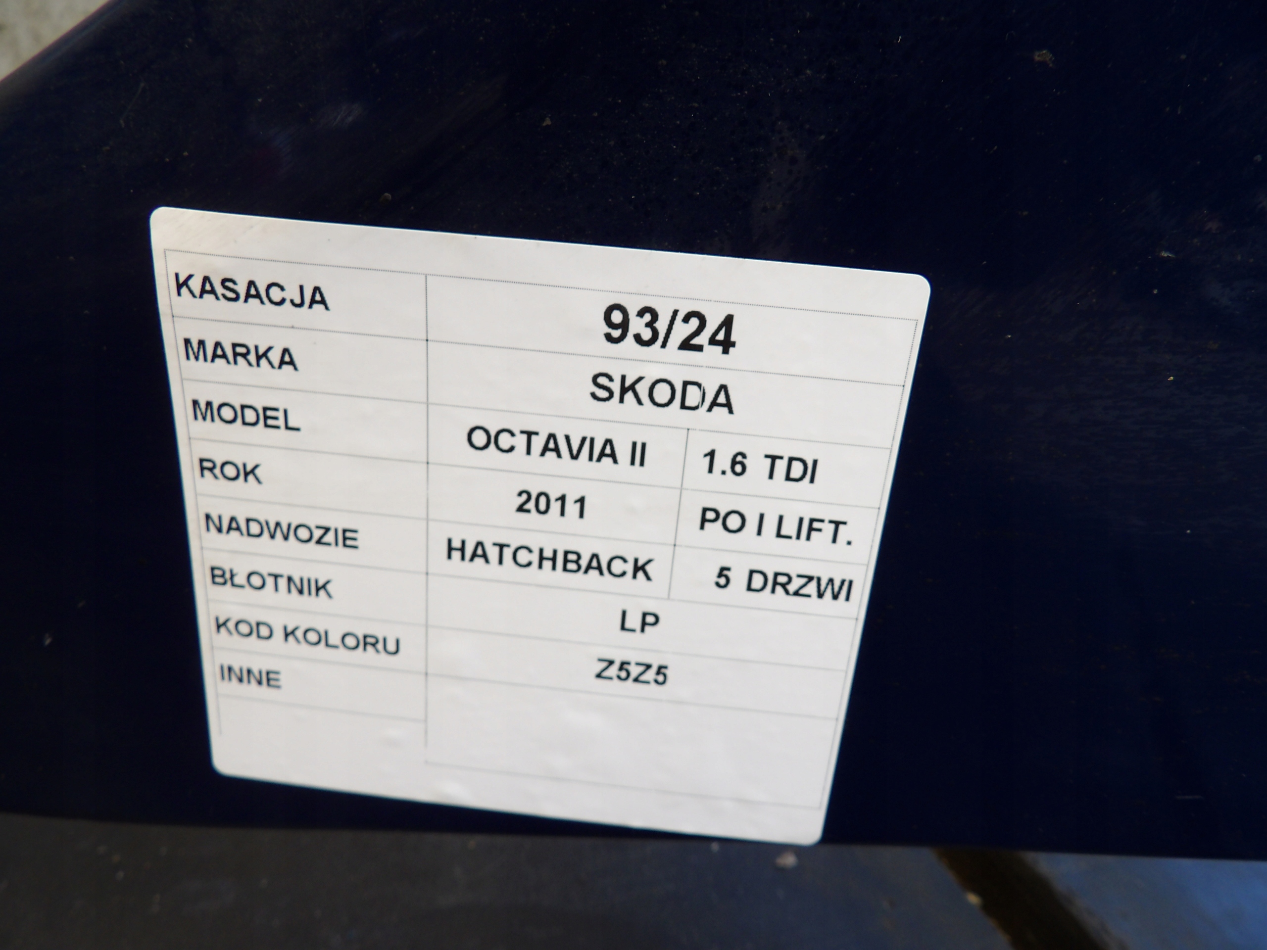 Чи є гарантія на Skoda octavia ii крила передній лівий lak. z5z5?