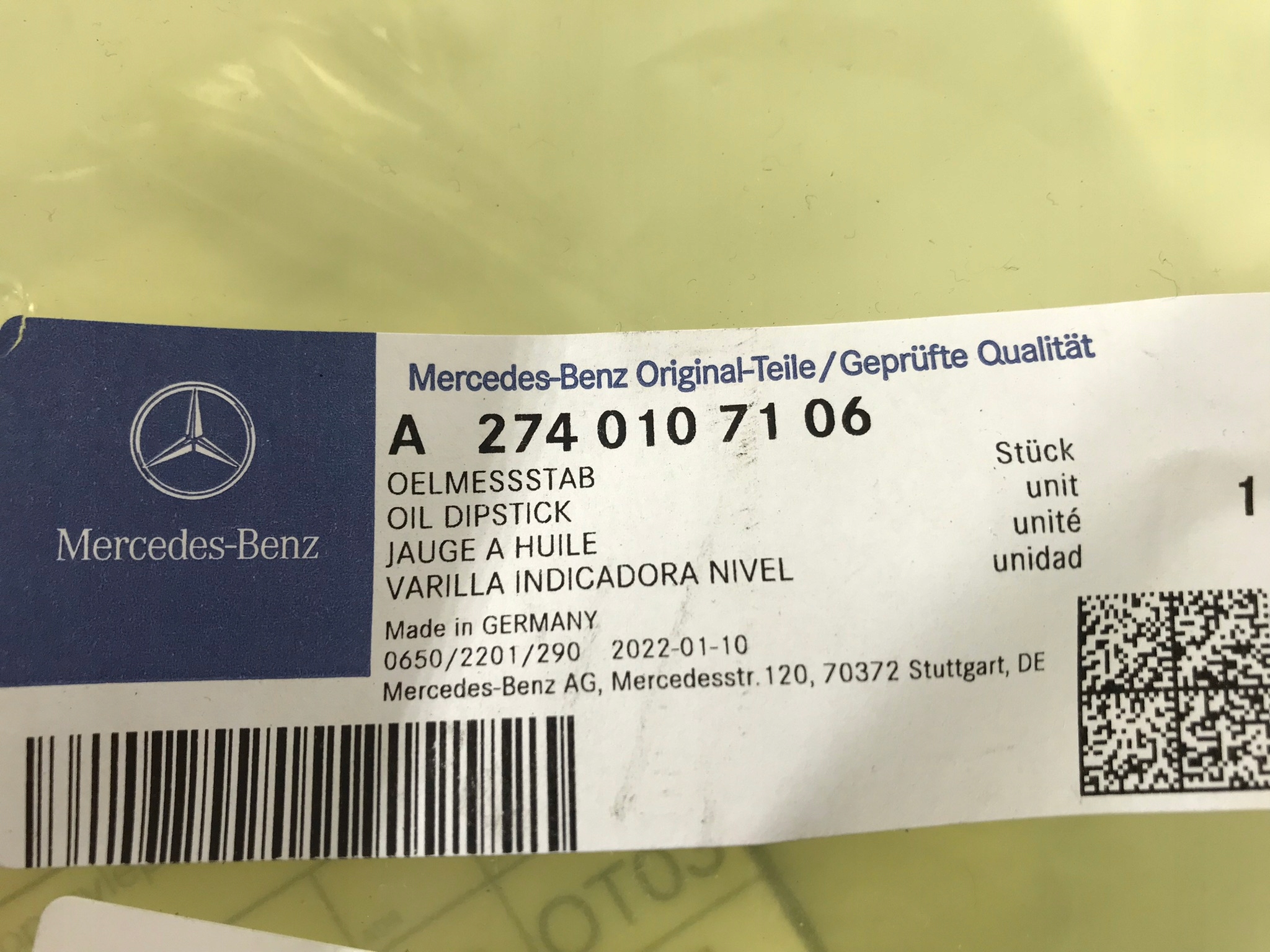 Щуп щуп оливи mercedes-benz a2740107106