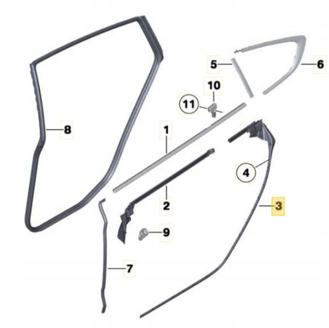 Прокладка скло двері лівий задня bmw 5 gt f07