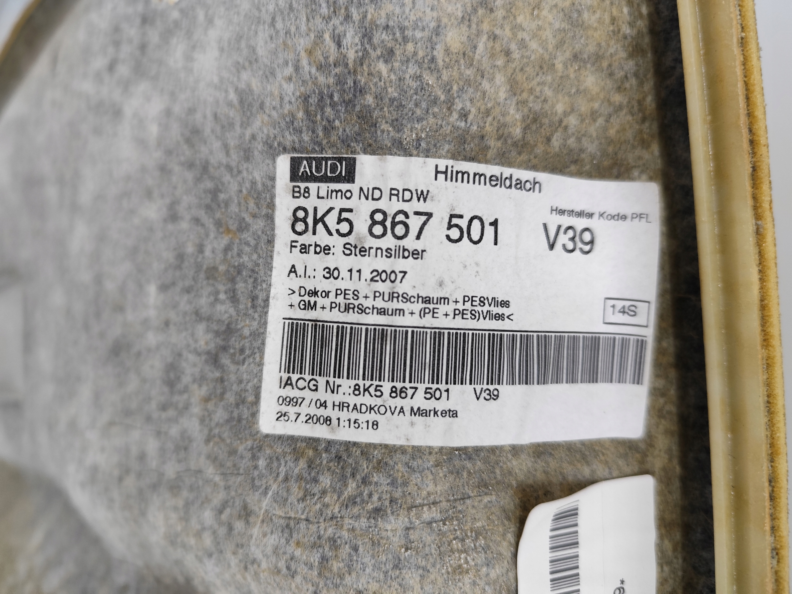 Audi a4 b8 sedan стеля 8k5867501