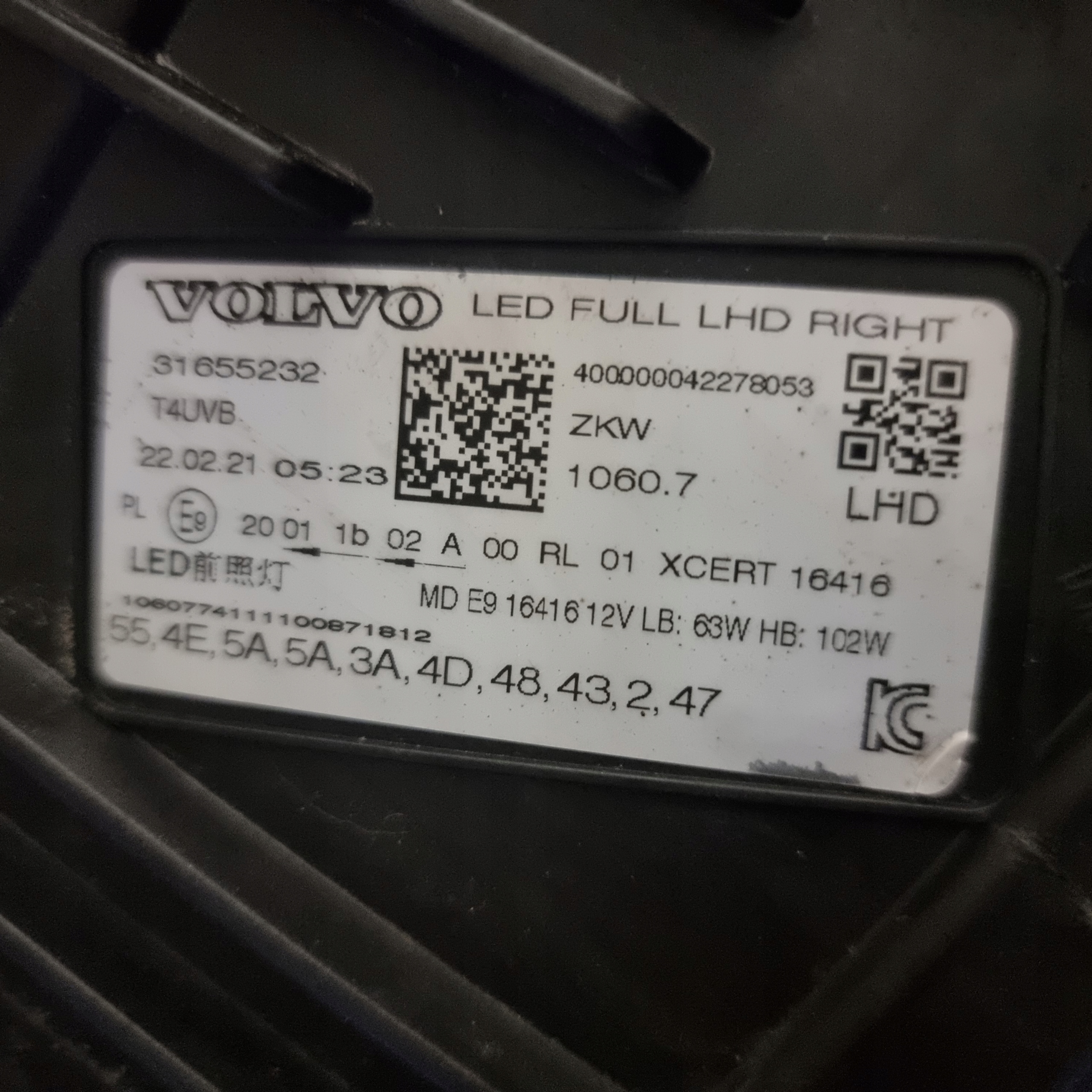Чи є гарантія на Фара правий перед volvo xc60 2017-2021 full led 2018-2021 3655232?
