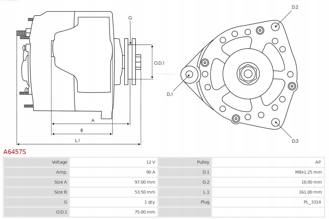 Каталожні номери замінників: AS-PL A6457S