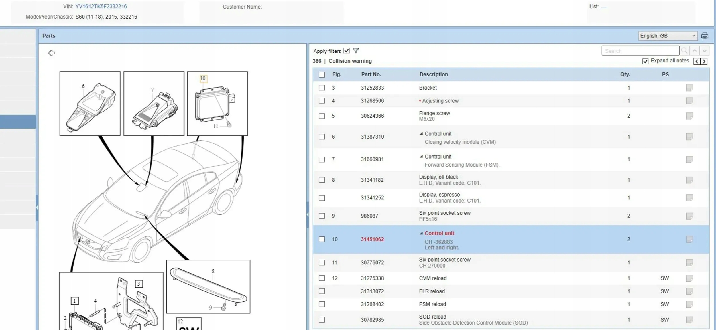 Volvo s60 2015 датчики поперечина руху