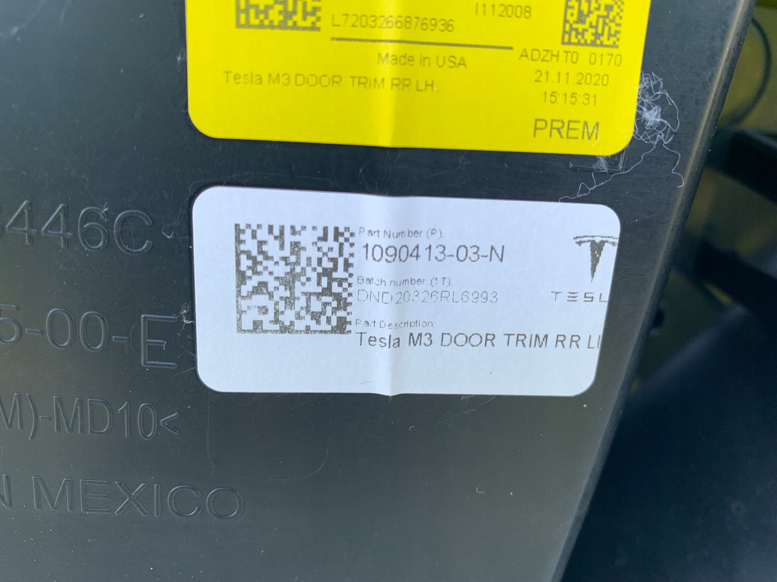 Tesla model 3 lift оббивка обшивка двері задній лівий задня 1105095-00-e usa