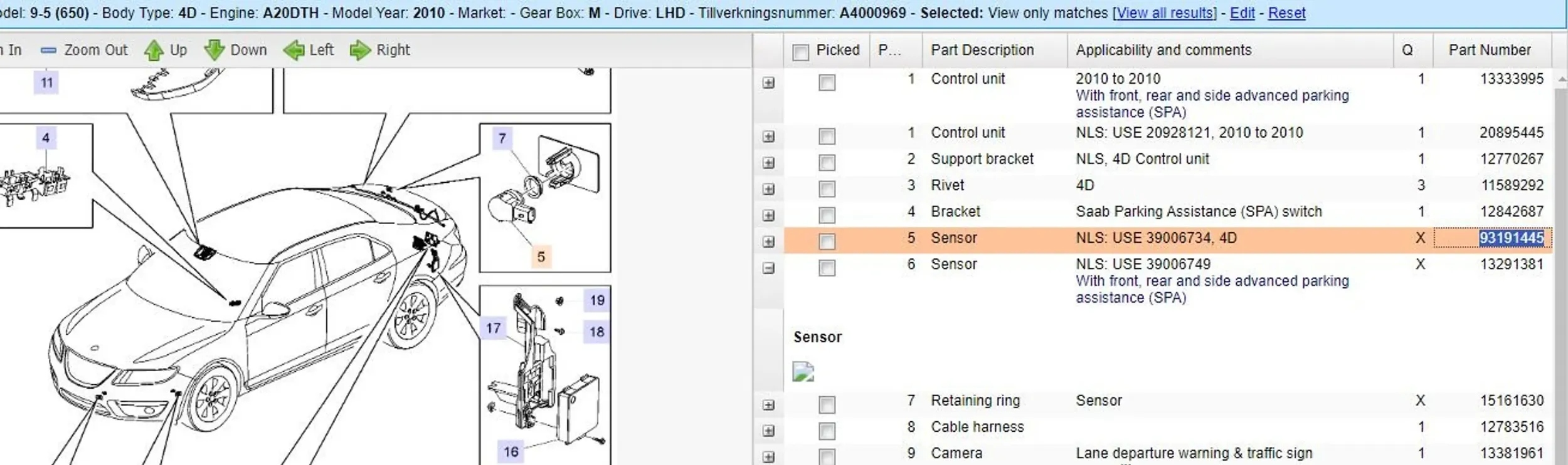 Saab 9-5 2011 датчики паркування