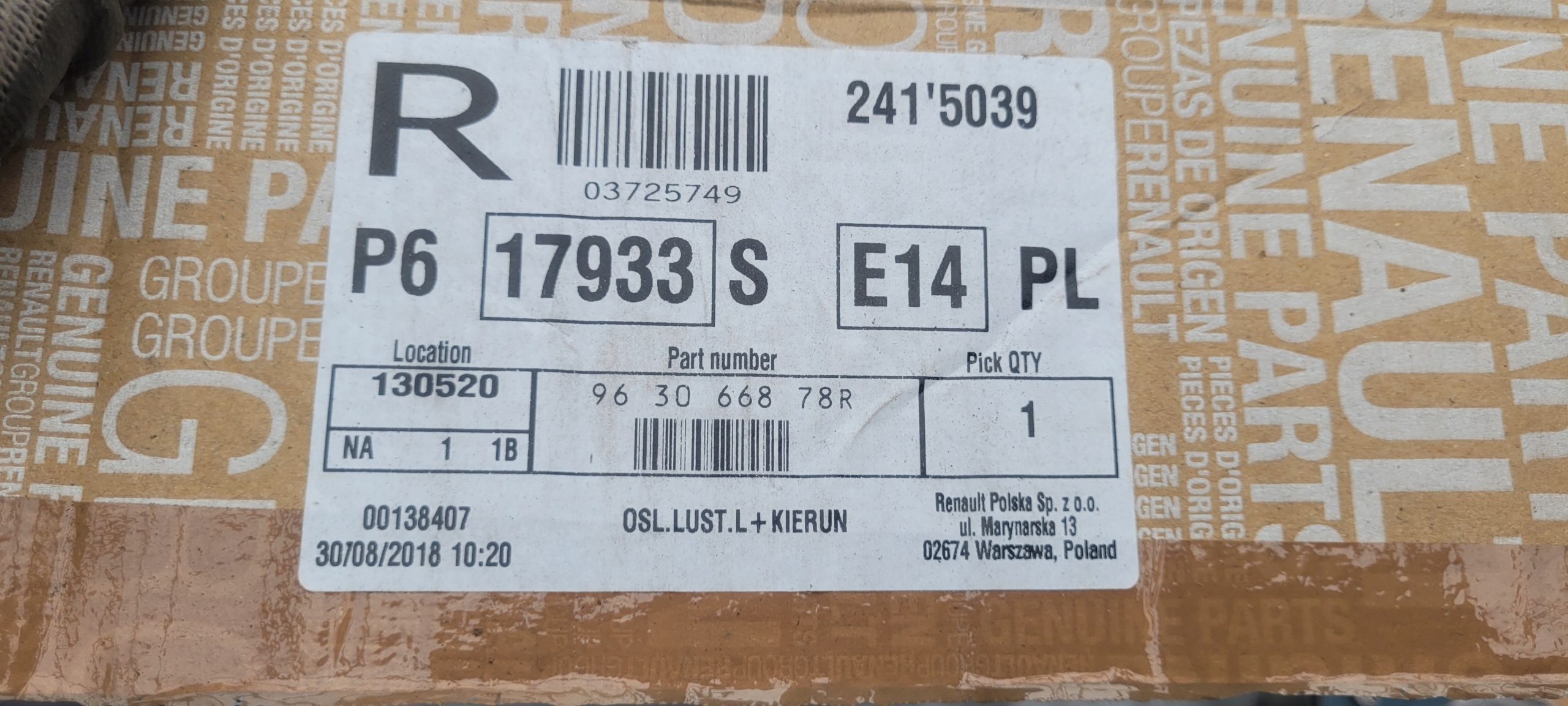 | Якість частини відповідно з gvo: | o - оригінал з logo виробник транспортного засобу оригінальний номер |