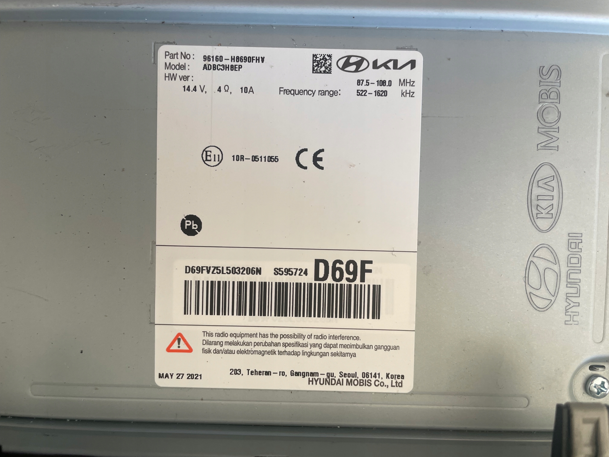 Чи є гарантія на Kia picanto радіо 96160-h8690?
