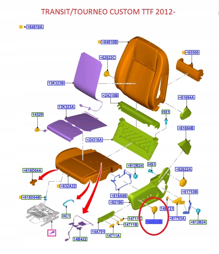 Ручка do регулювання сидіння transit 18- 2303120 _ bk21-f618k78-fb3zhe