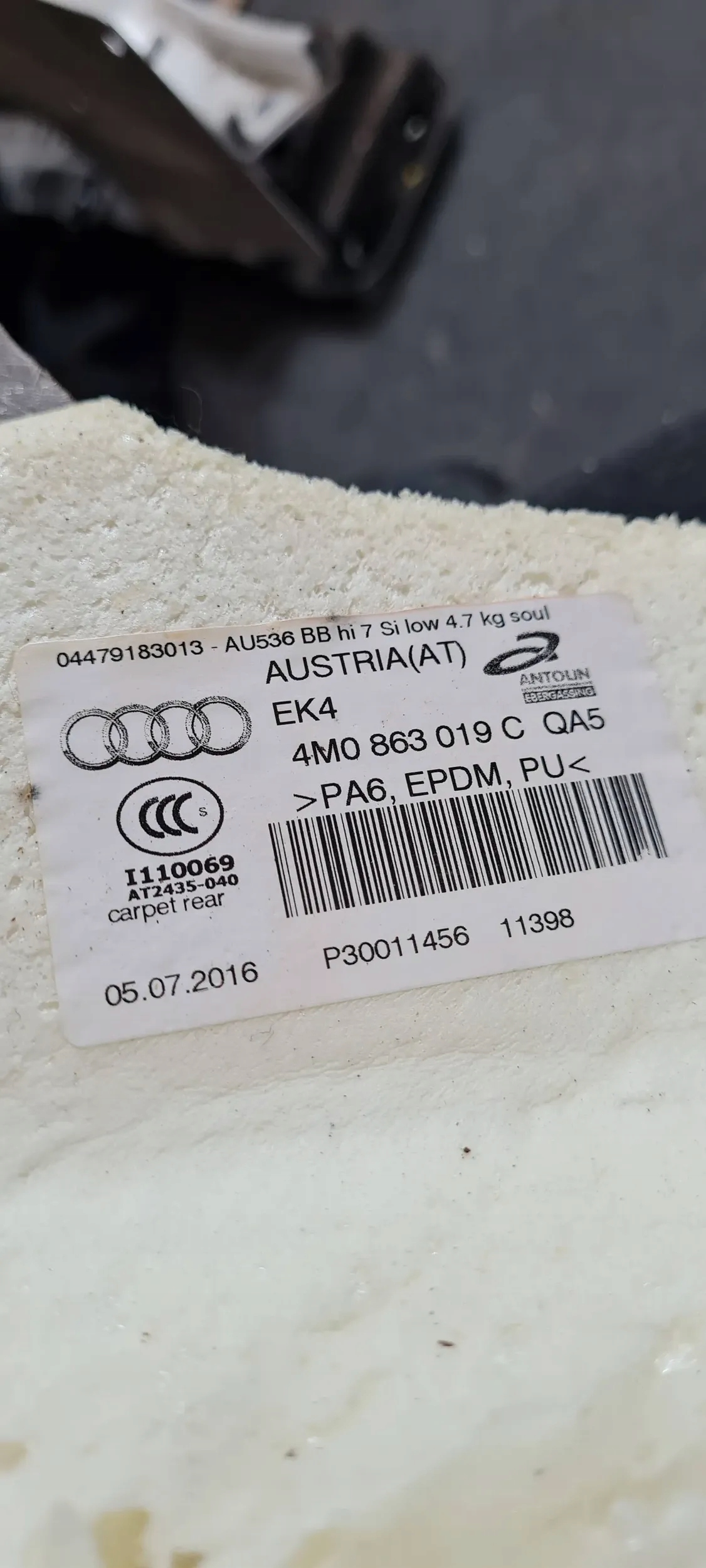 Q7 4m ii килимок обшивка підлога мат 4m0863019c