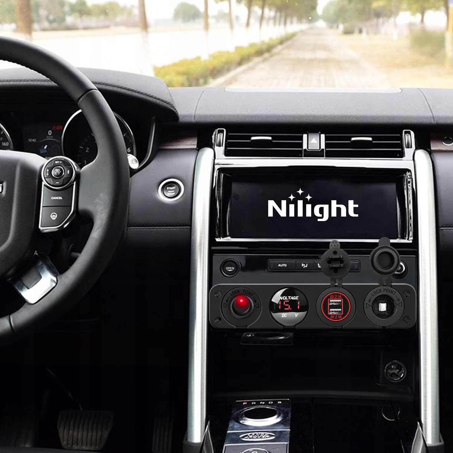 4-w-1 роз'єм зарядний пристрій перемикач панель woltomierz прикурювача 2x usb