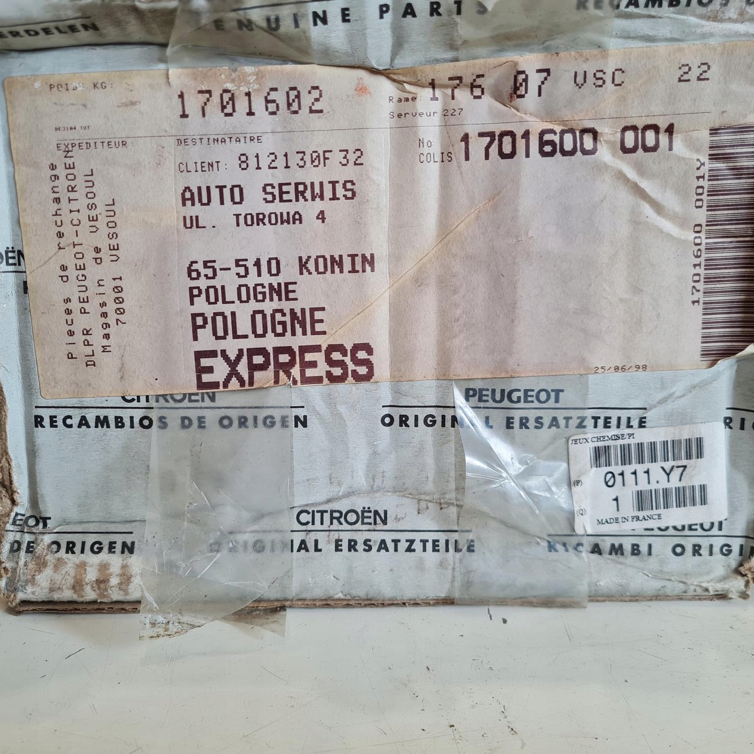 Citroen xantia xsara peugeot 306 406 1.8 16v втулки поршні kpl 0111.y7 оригінальний номер