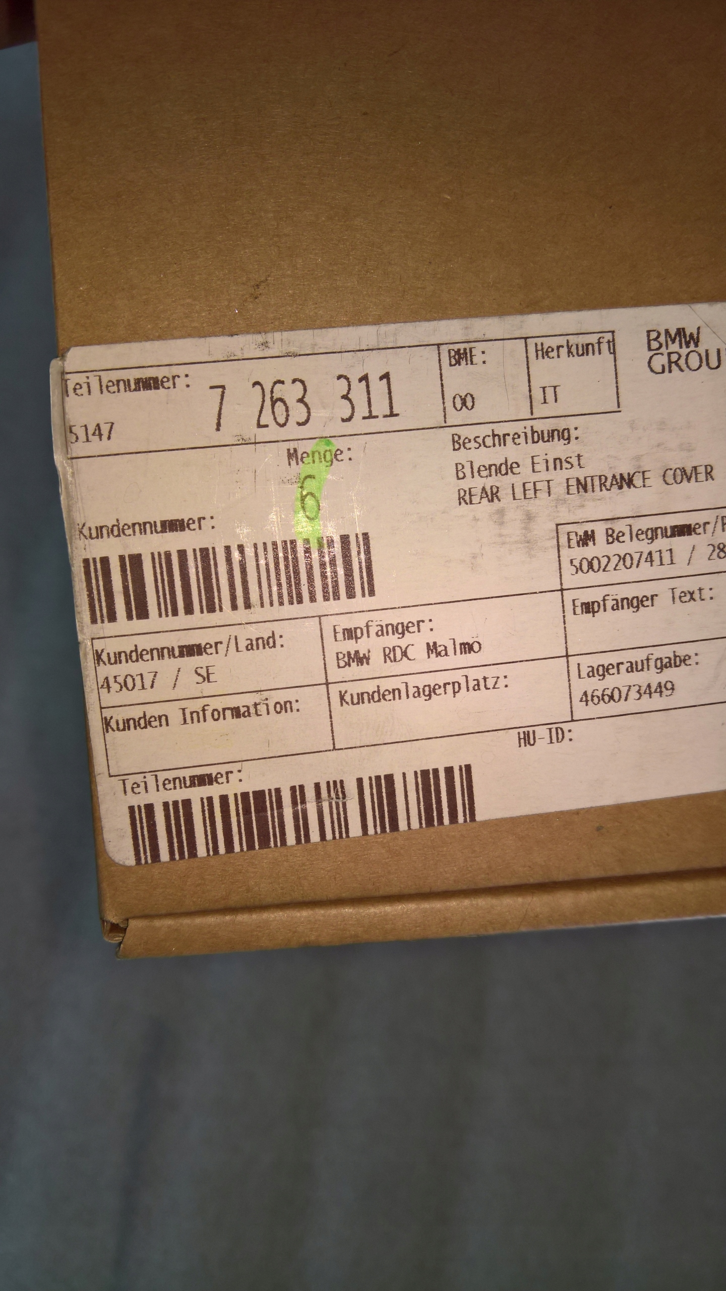 | Оригінальний каталожний номер: | 51 47 7 263 311 ; 51477263311 ; 7263311 |