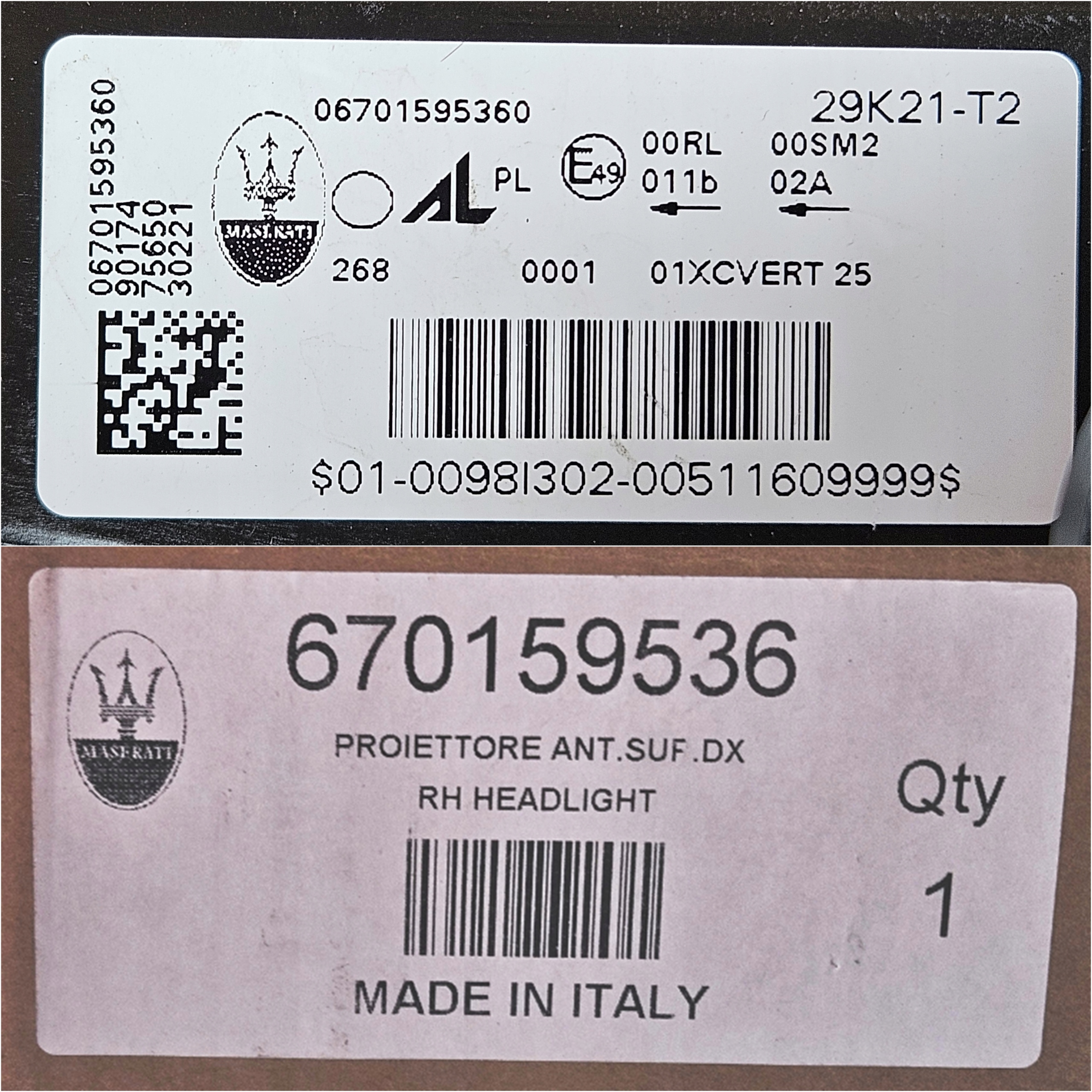 Каталожний номер деталі: MASERATI, 06701595360, /, MASERATI, 670159536