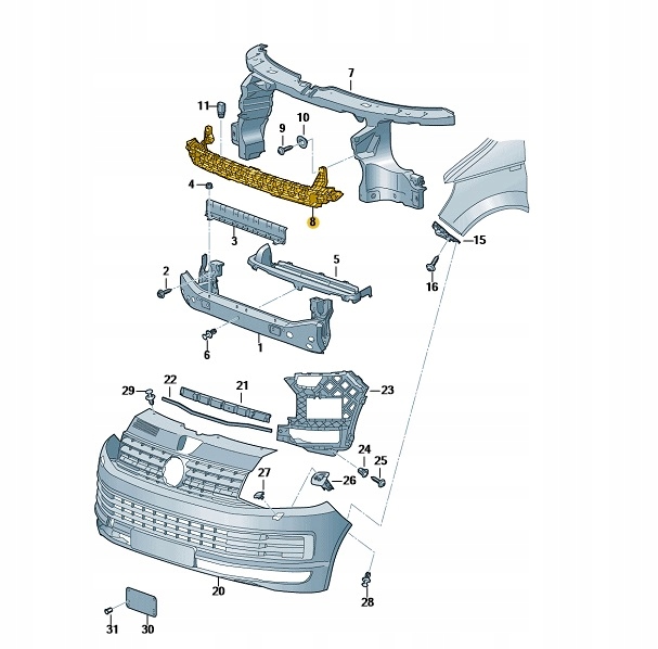 Балка бампера перед vw transporter oe: 7e0807699a