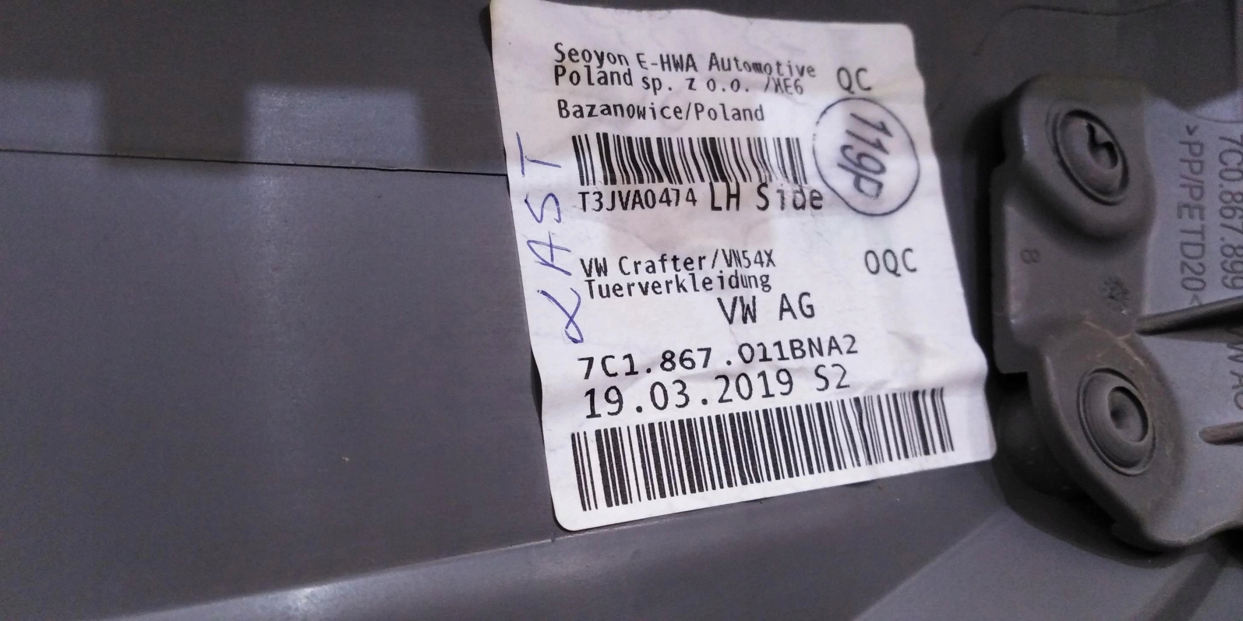 | Каталожний номер деталі: | VW CRAFTER II 7C BOCZEK TAPICERKA DRZWI LEWY PRZÓD |