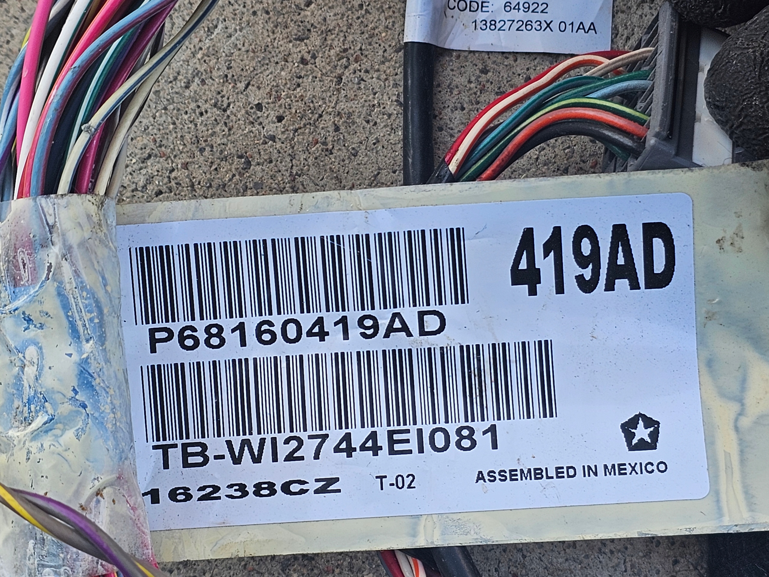 | Каталожний номер деталі: | 68160419AD |