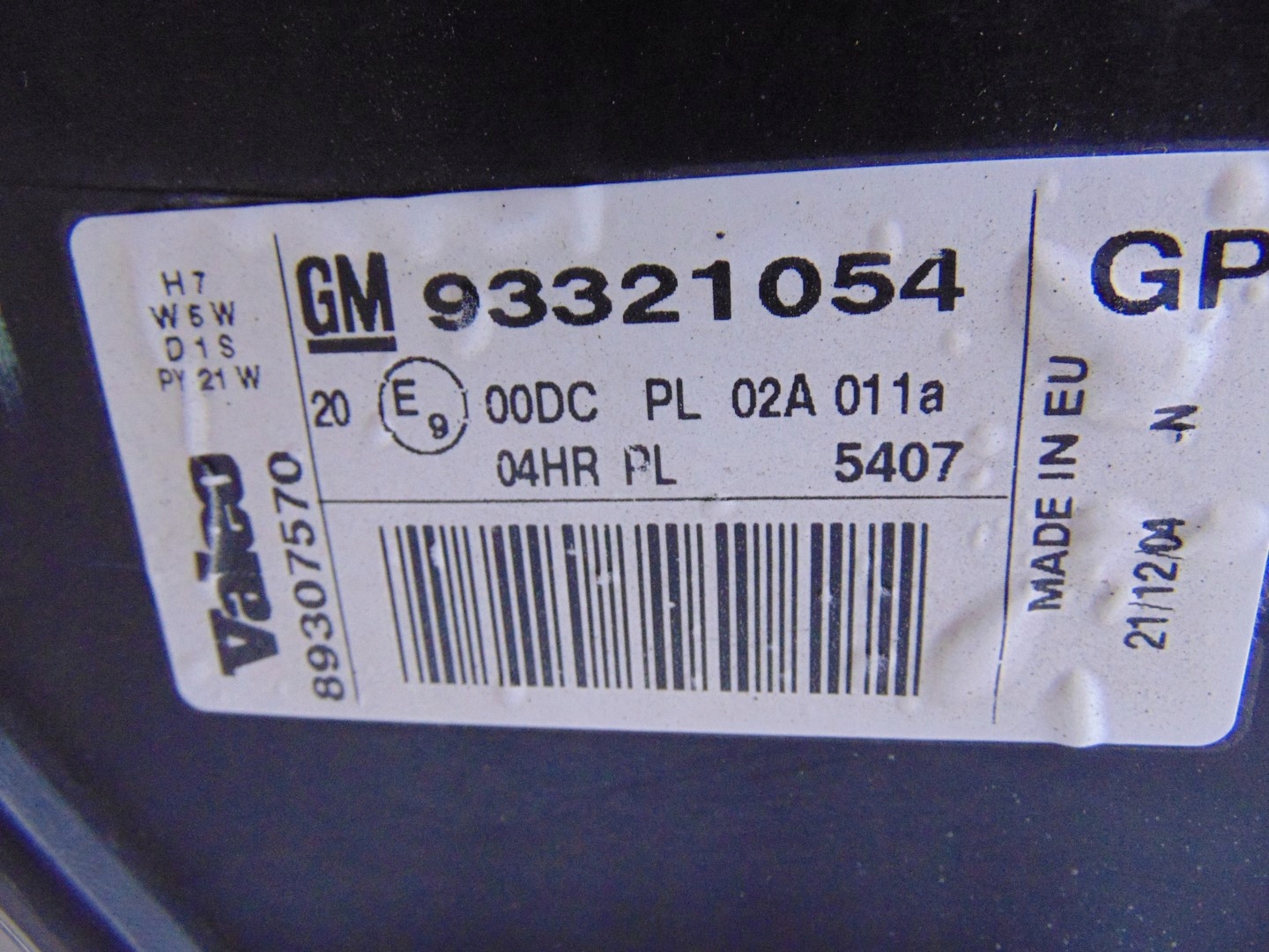 | Каталожний номер деталі: | 93321054, 89035113 |