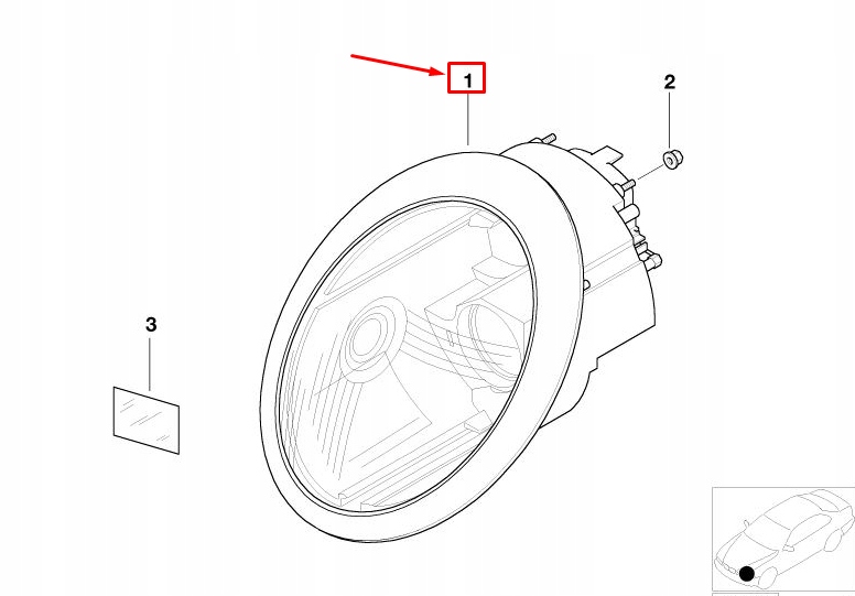 Mini cooper r50, r53 передня частина правий фара rhd 63127198734 7198734