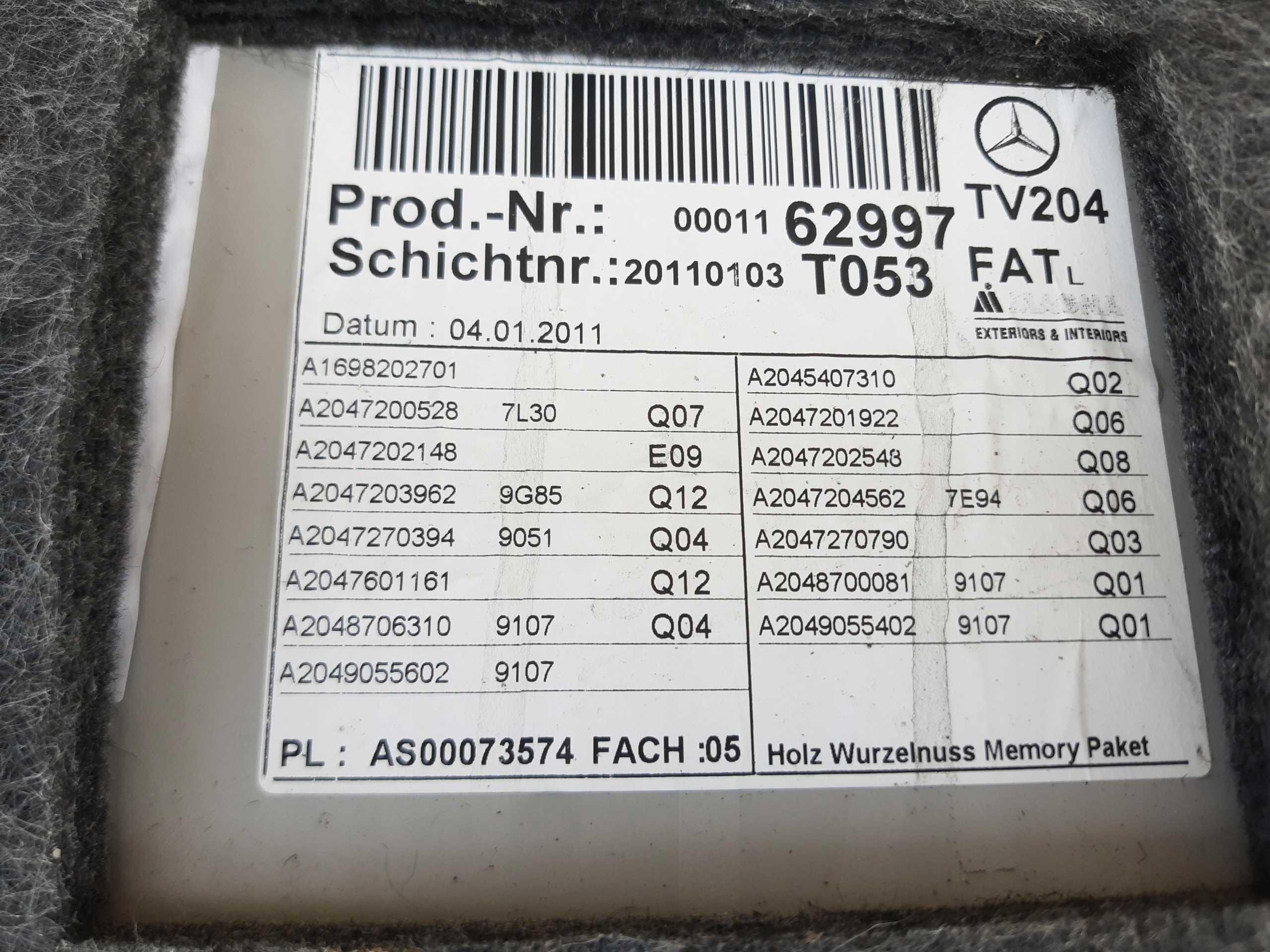 | Каталожний номер деталі: | A2047209762, 2047209762 |
