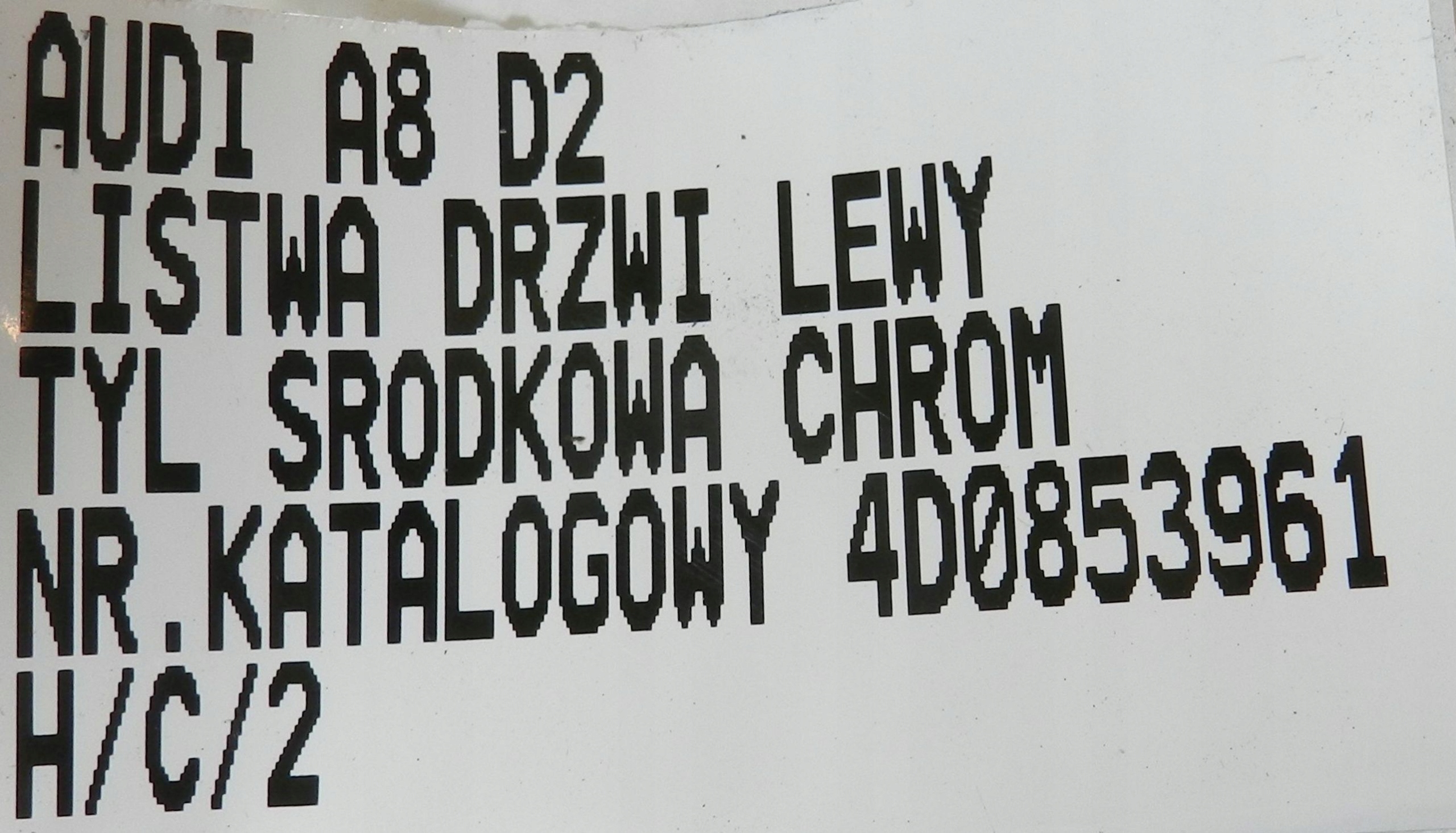 | Каталожний номер деталі: | AUDI A8 D2 LIFT 99-02 LISTWA DRZWI LEWY TYŁ CHROM 4D0853961 |