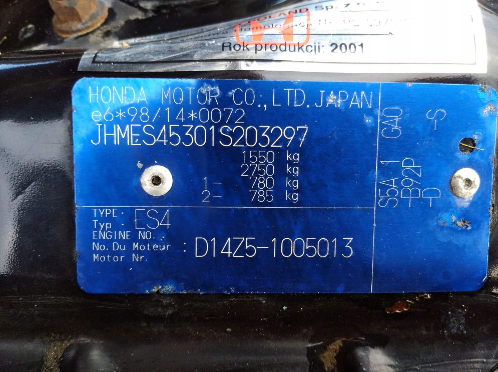 Каталожний номер деталі: HONDA CIVIC 7 VII ES4 SEDAN 00- KLAPA BAGAŻNIKA TYŁ TYLNA B92P CZESCI CZĘŚCI