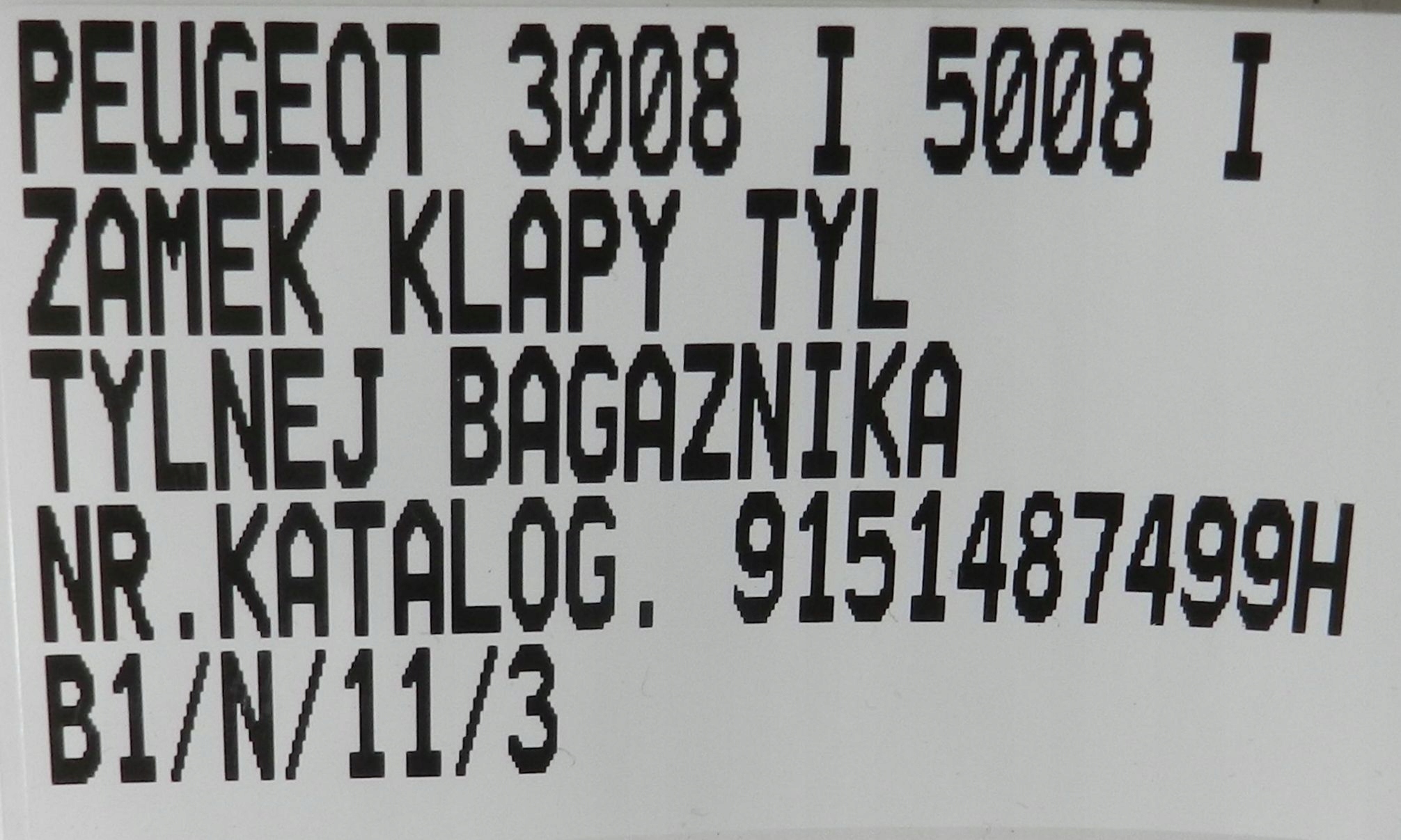 Каталожний номер деталі: PEUGEOT, 3008, I, 09-16, ZAMEK, KLAPY, TYŁ, BAGAŻNIKA, 9151487499H