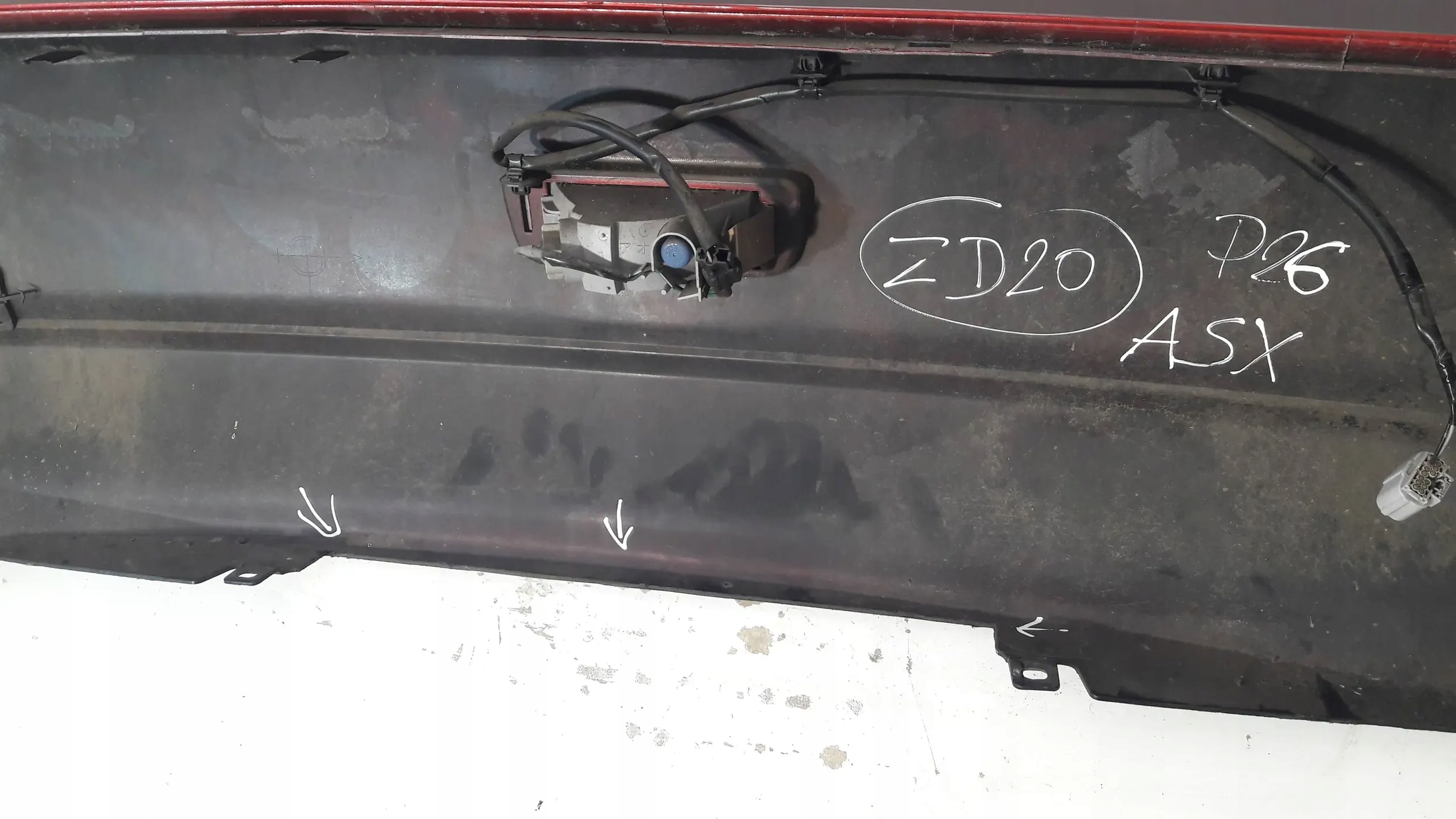 Бампер задній mitsubishi asx 2012- лак p26 rysa з лівий сторони zd20