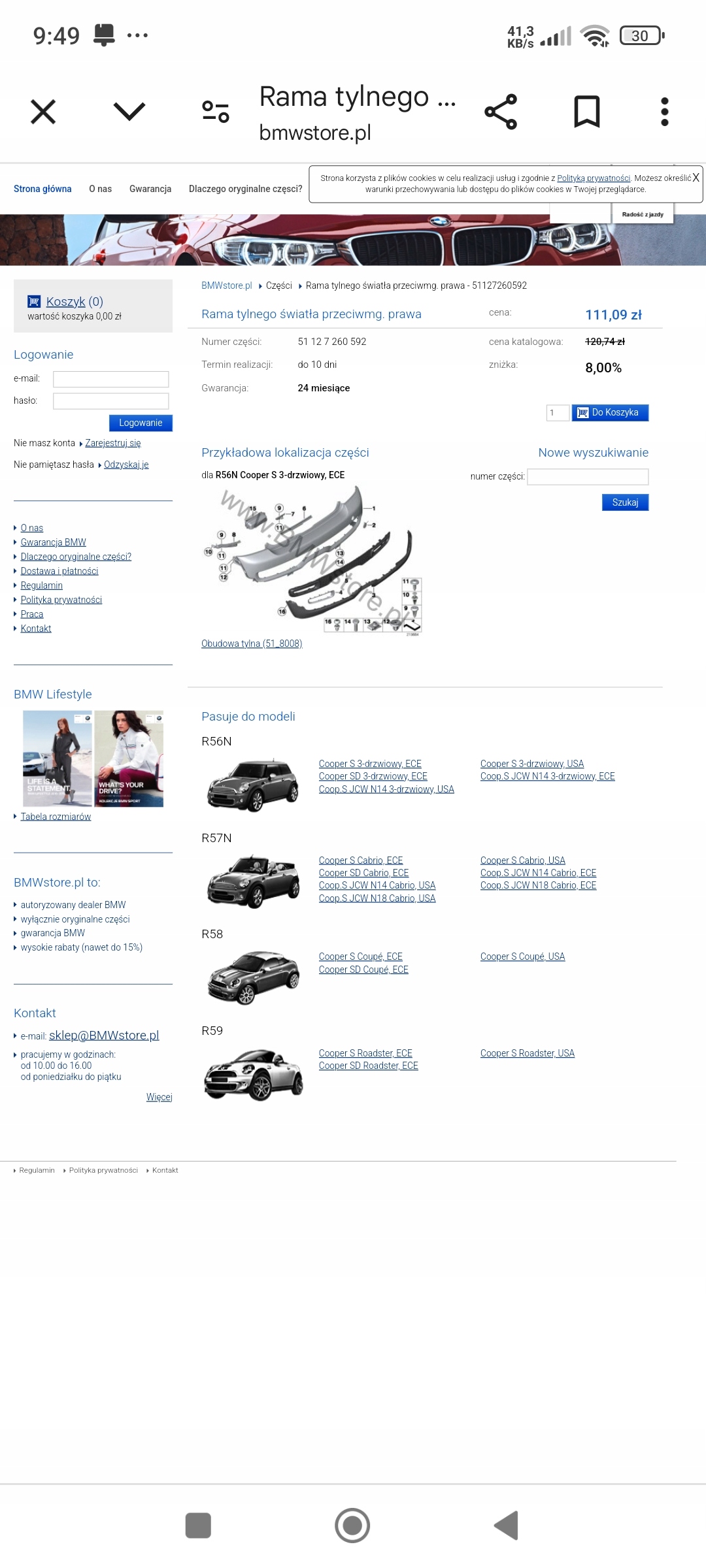Рамка хром права лампи бампера задня mini cooper s r56