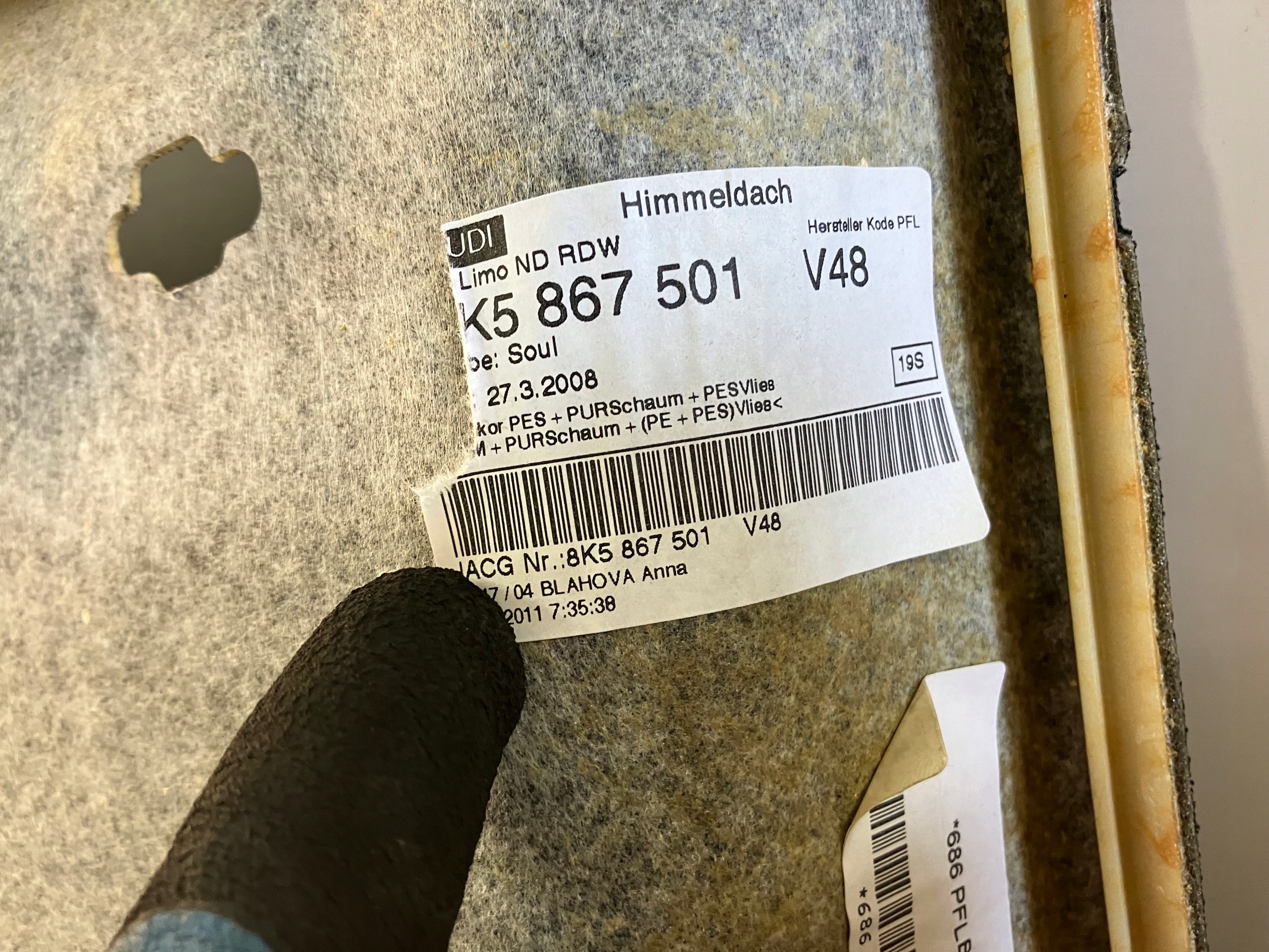 | Каталожний номер деталі: | TDIS Podsufitka sufit Sline S-line czarna Audi A4 B8 Sedan |