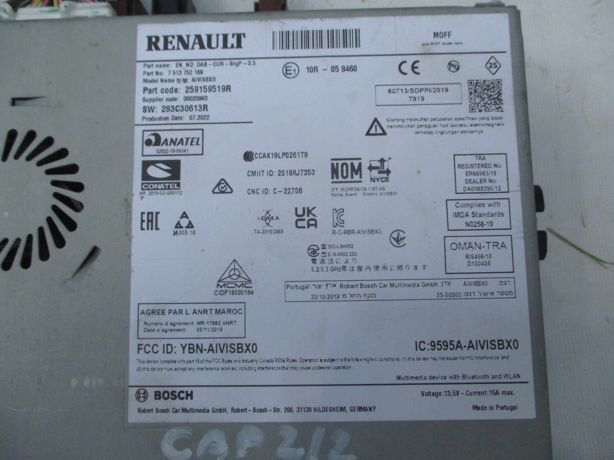 Каталожний номер деталі: 280342895R, 259159519R, 2591A2858R, 282124064R