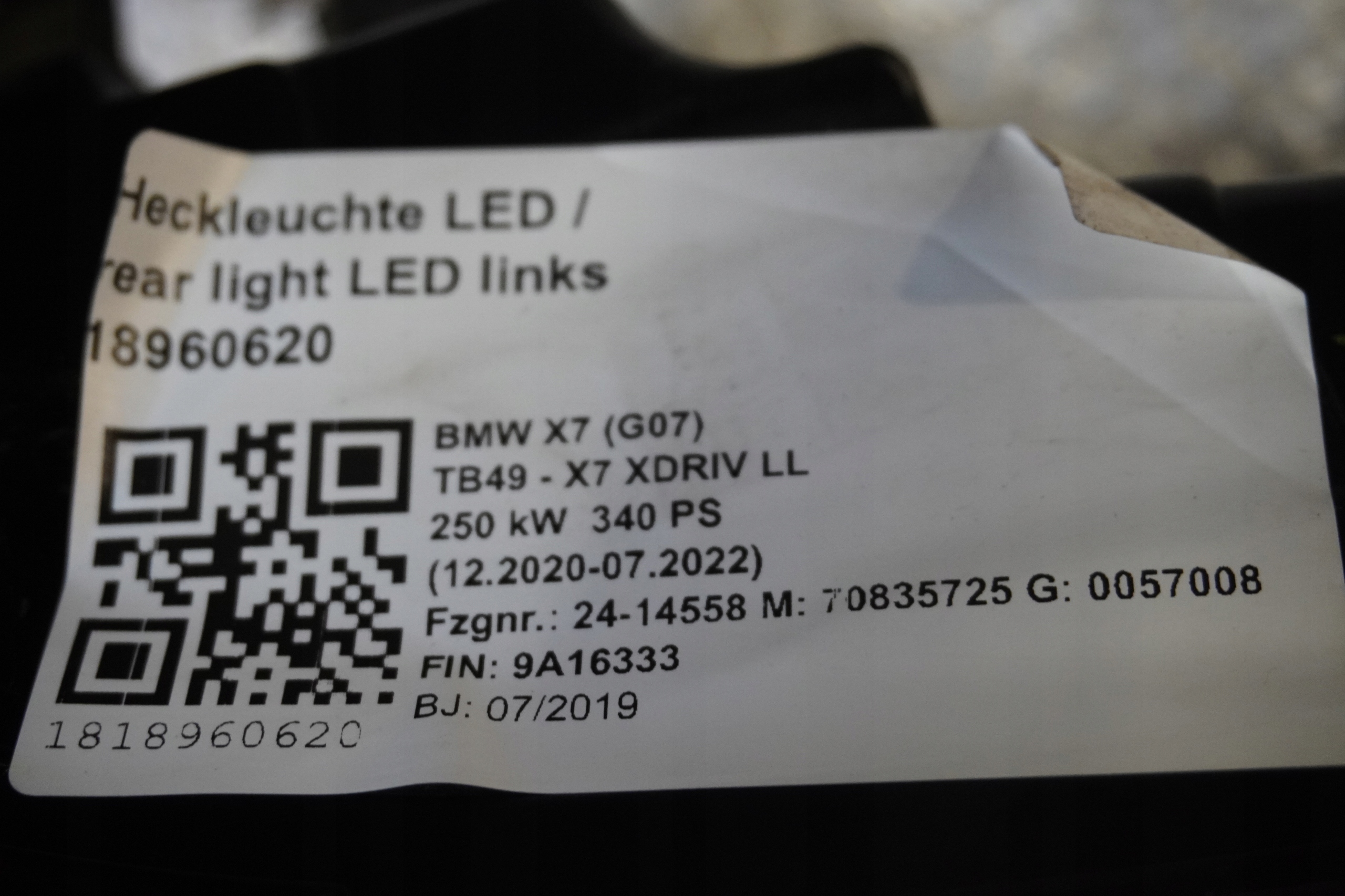 Чи є гарантія на Кришка багажника лампи борт бампер bmw x7 g07 a96?