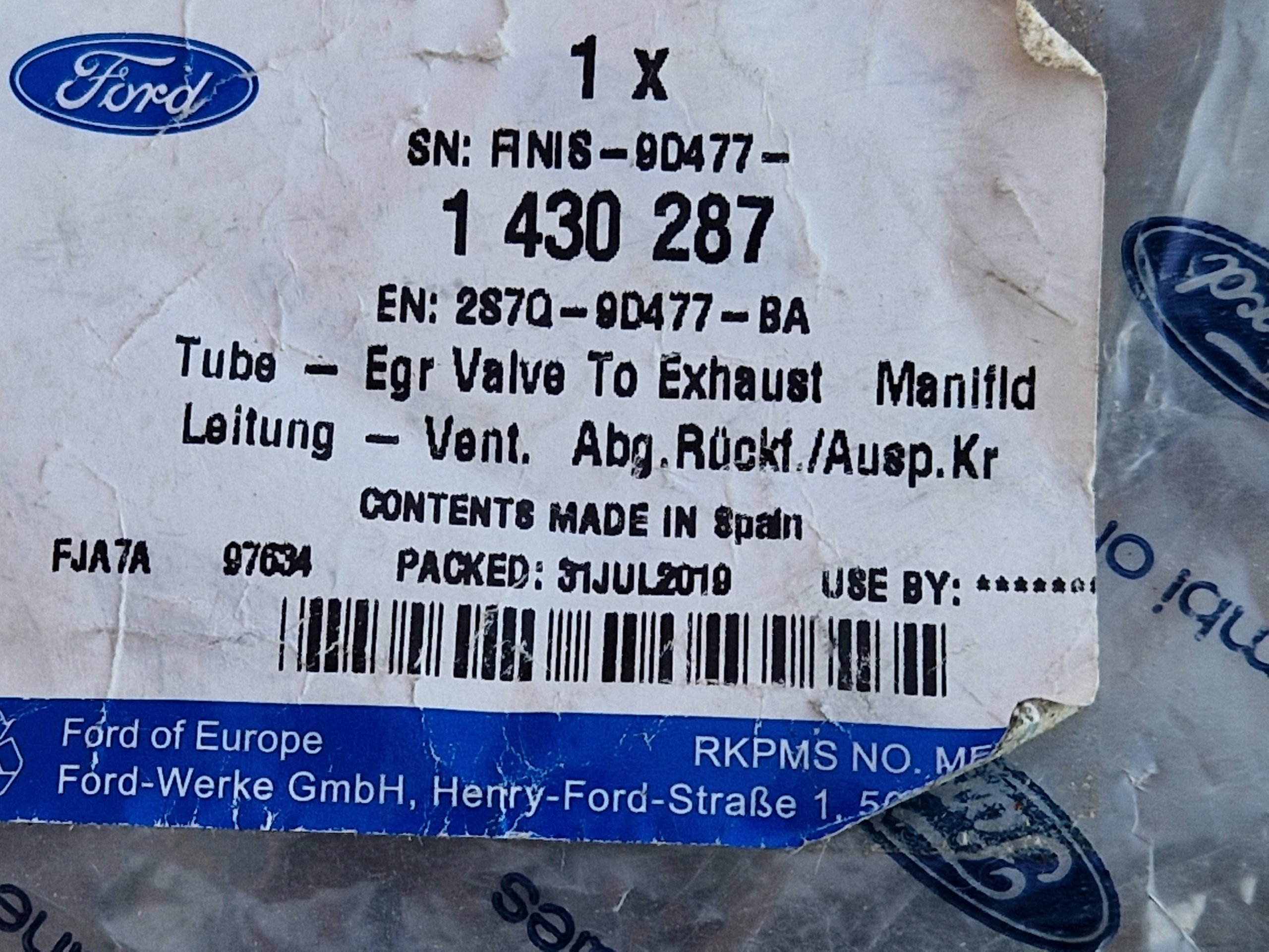 Шланг клапана egr ford transit 2,0 tdci 00- ford 1430287