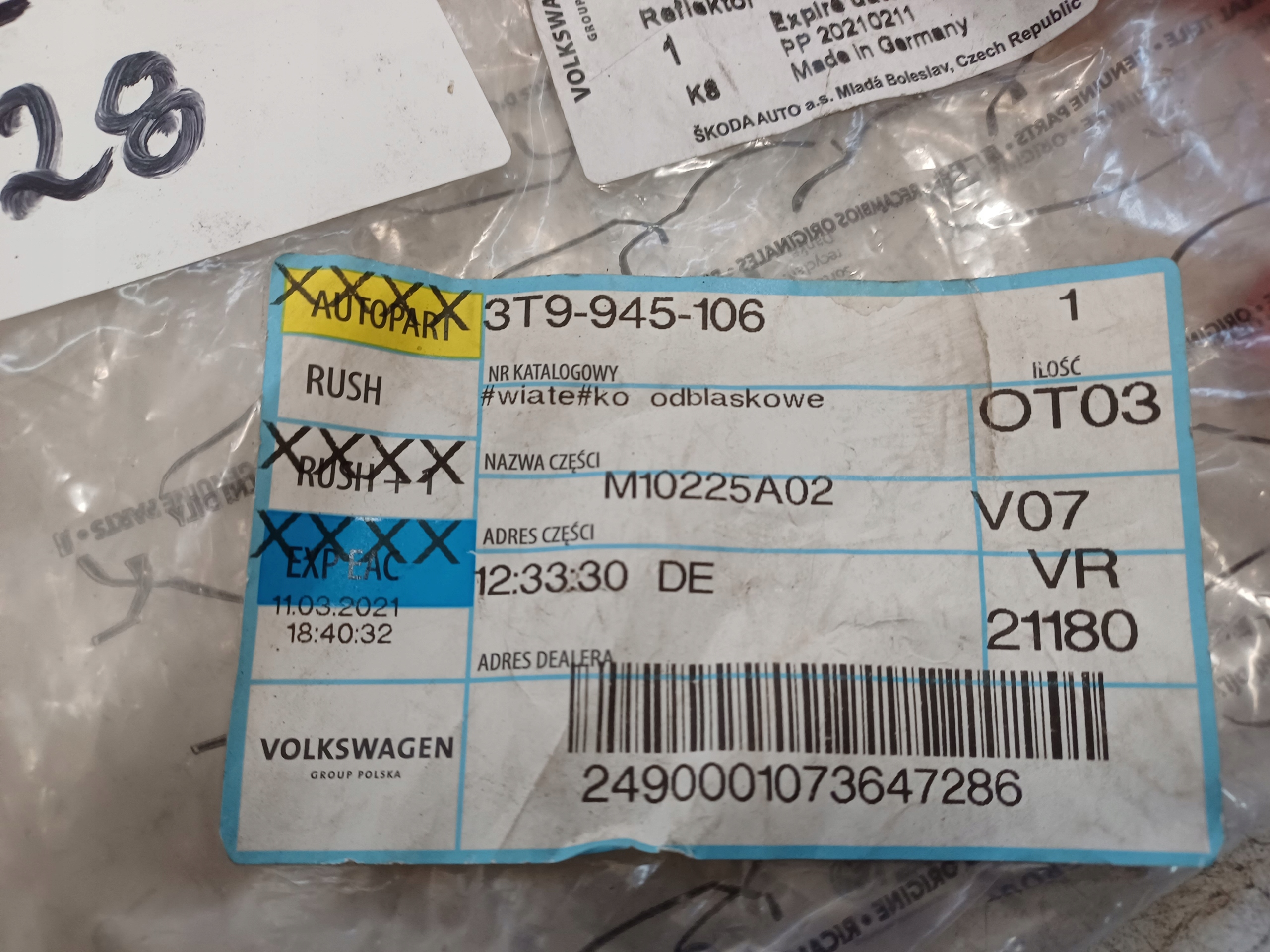 Каталожний номер деталі: SKODA SUPERB 2 II 08- ODBLASK ZDERZAKA PRAWY TYŁ 3T9945106-RTEKO LUK625