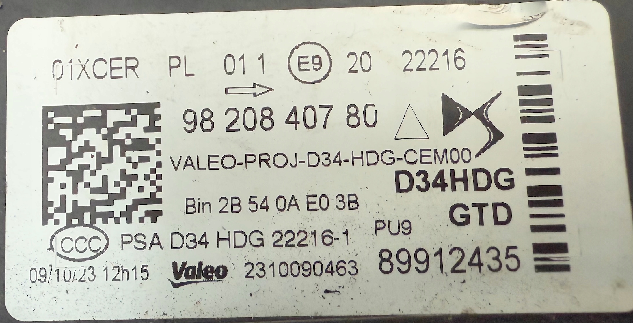 Лампа ліва перед ds3 crossback 9820840780 full led комплектна