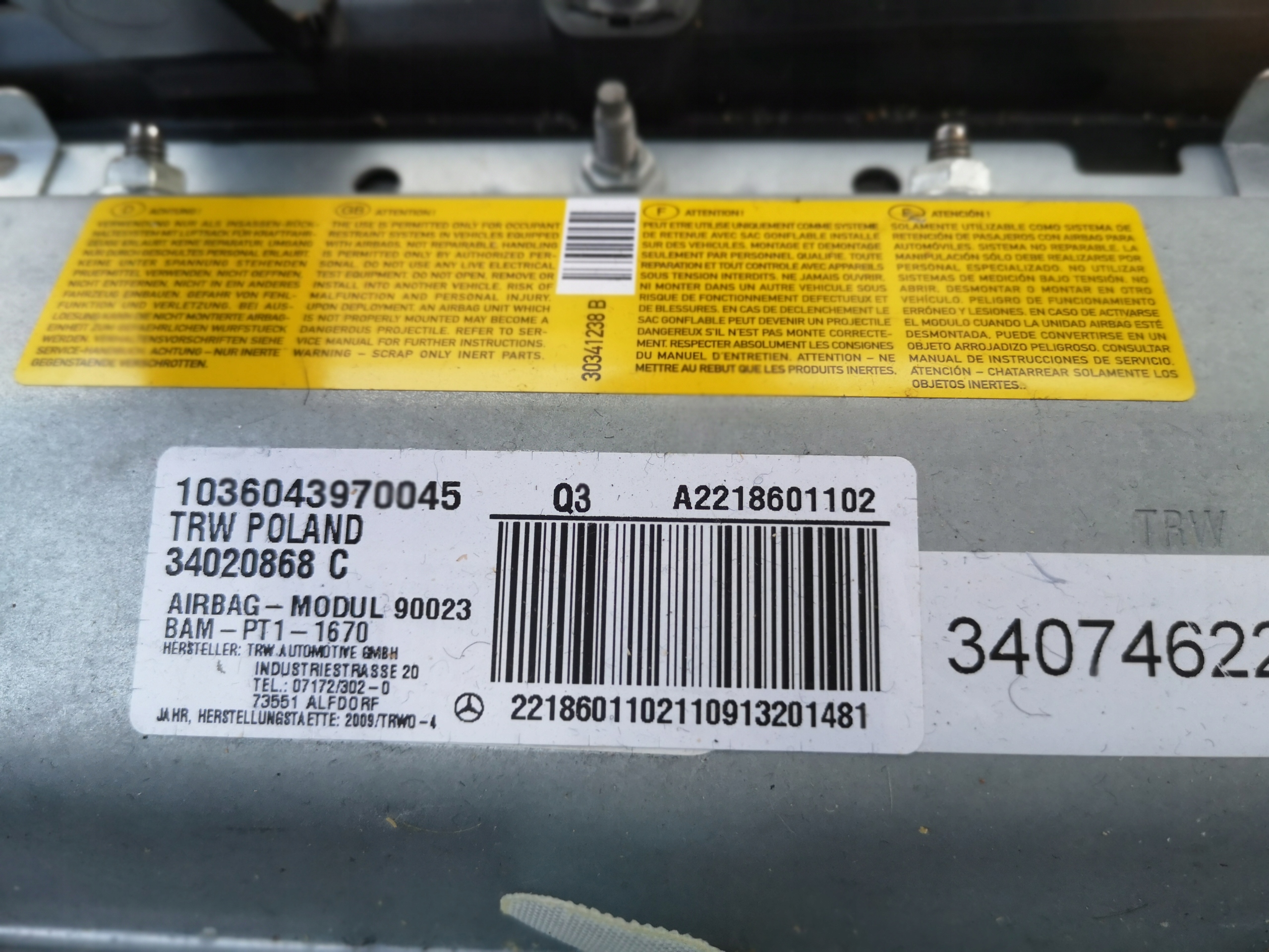 Mercedes s-klasa w221 панель приладів консоль dół нижня kolan dół панелі подушка безпеки