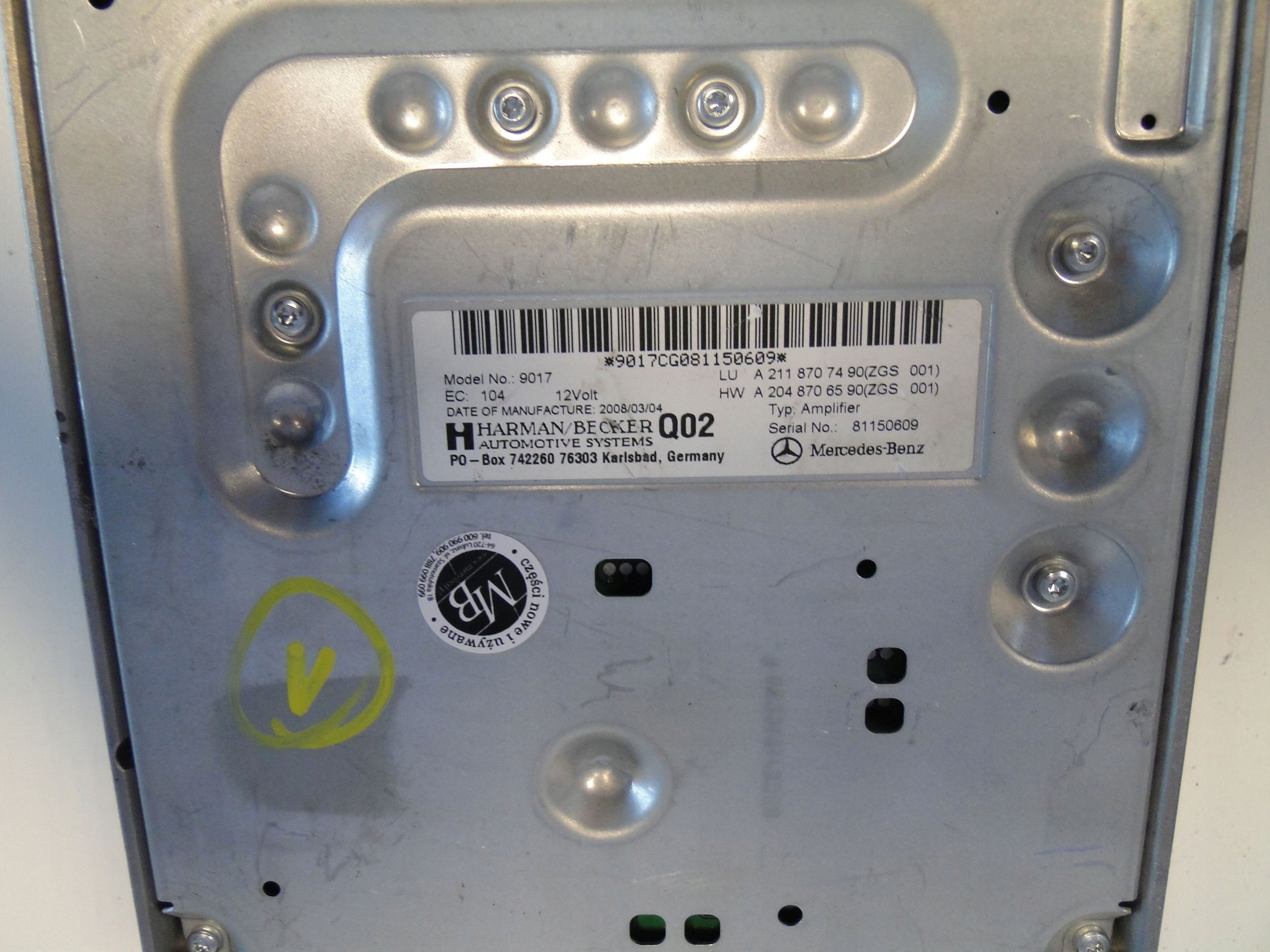 Каталожний номер деталі: A2118707490, MERCEDES, WZMACNIACZ, HARMAN, KARDON, PREMIUM, SOUND, SYSTEM, SLK, R171, 171, SL, R230, 230