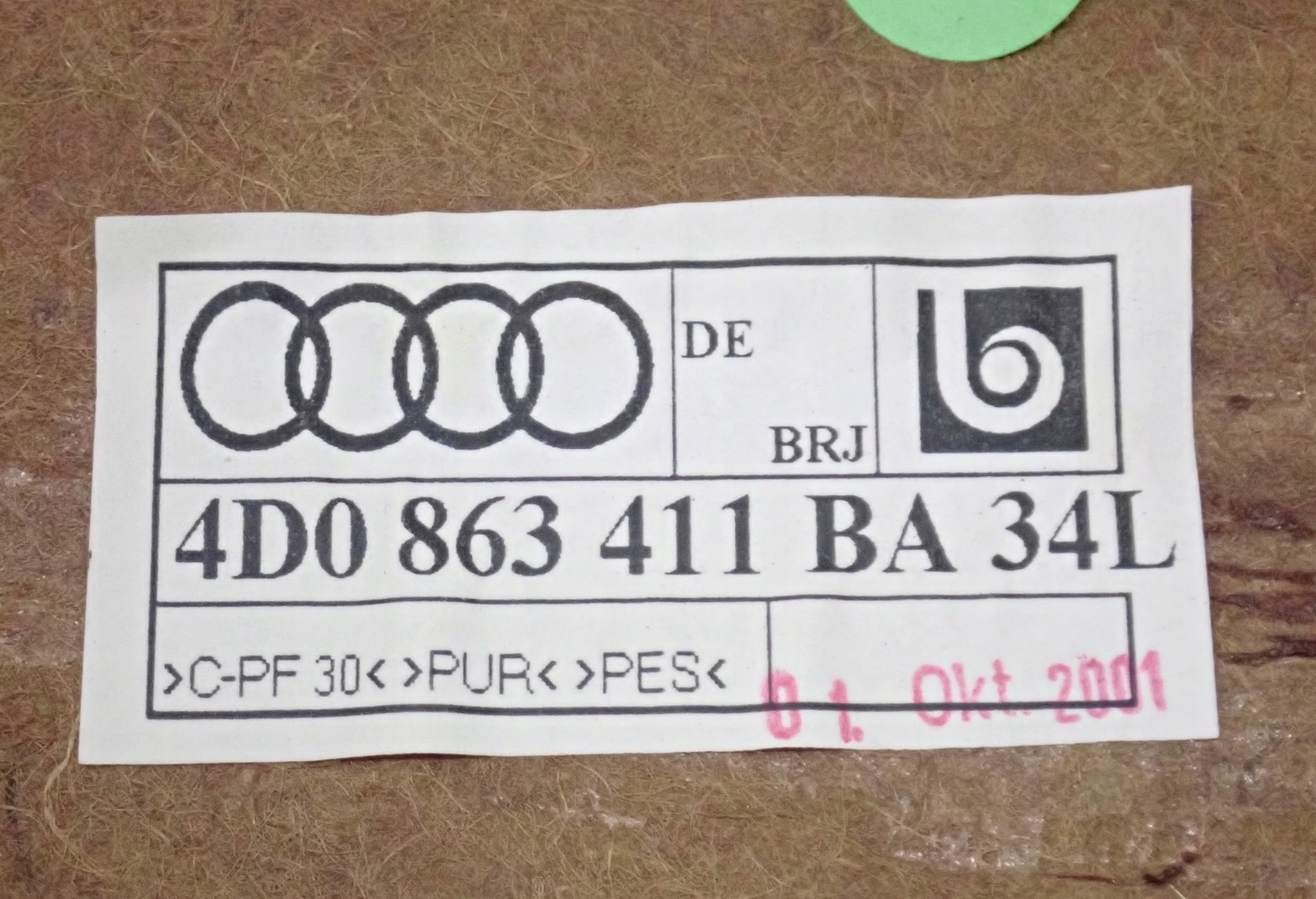| Оригінальний каталожний номер: | 4D0 863 411 BA 34L |