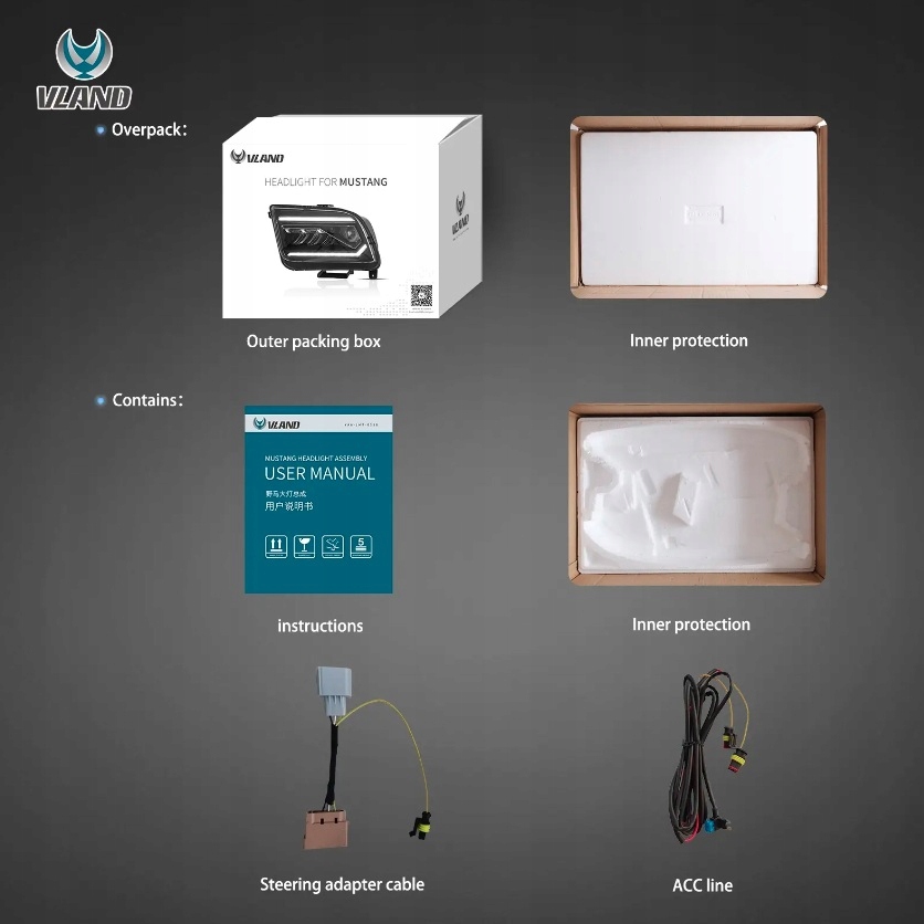 Ford mustang 2005-2009 лампа лампи перед led vland ліва + права