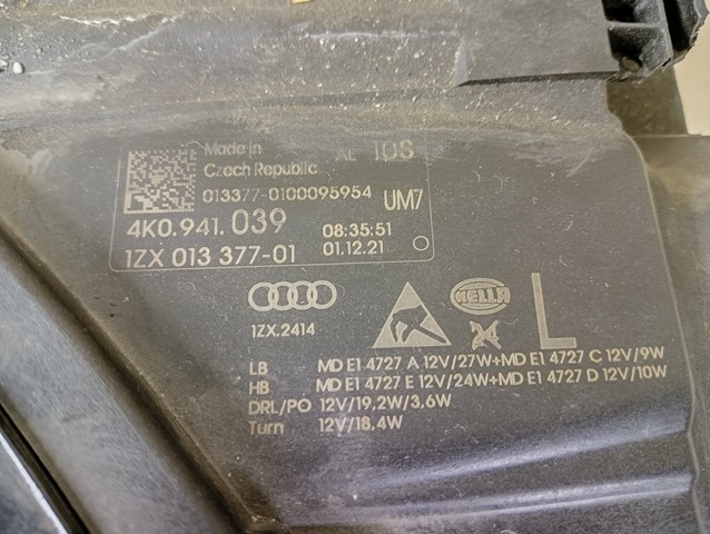 | Каталожний номер деталі: | 4K0941039, LAMPA, LEWA, LEWY, FULL, LED, MATRIX, AUDI, A6, C8, 4K, 18- |