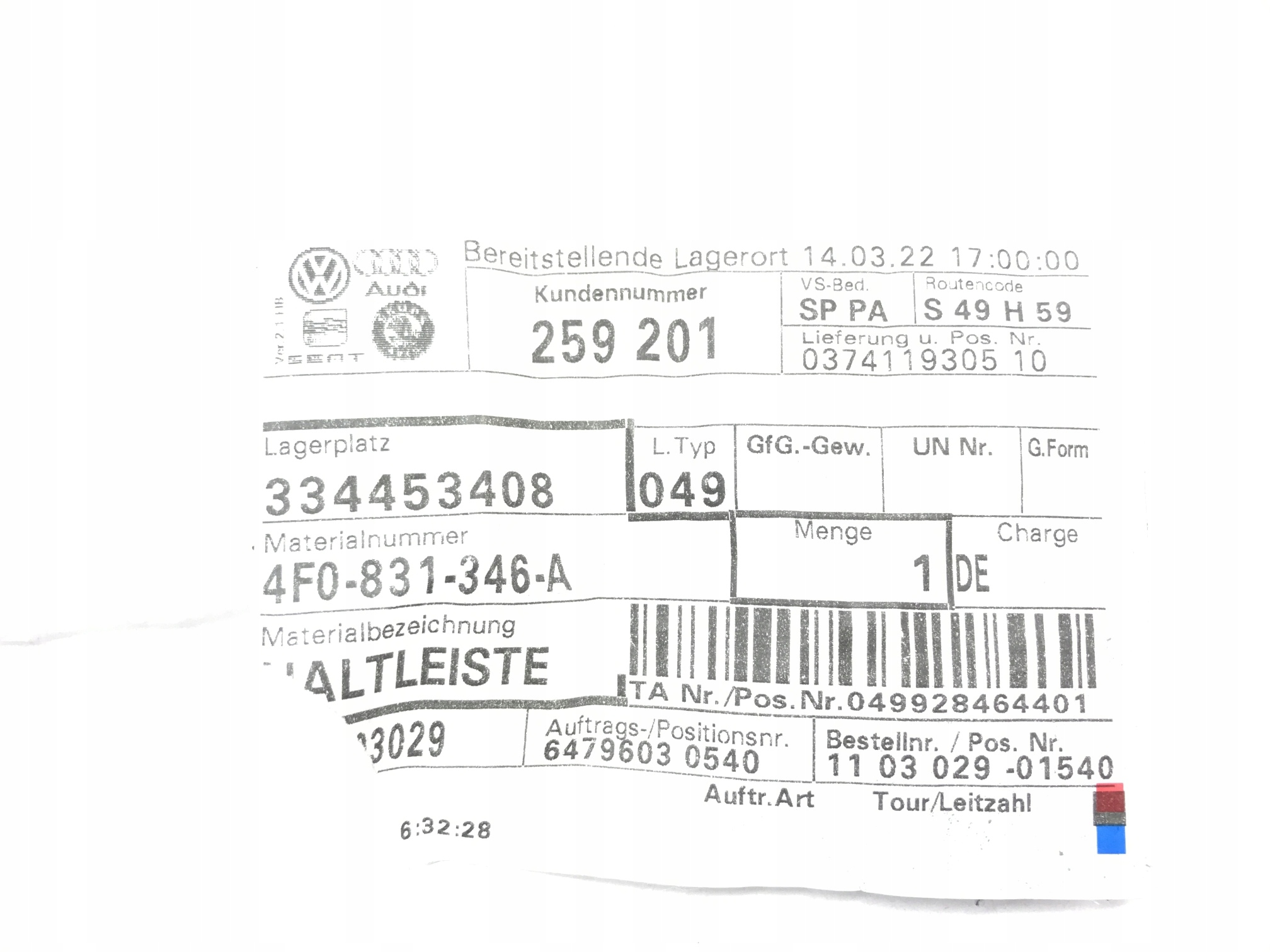 | Каталожний номер деталі: | Audi A6 C6 4F0831346A - |