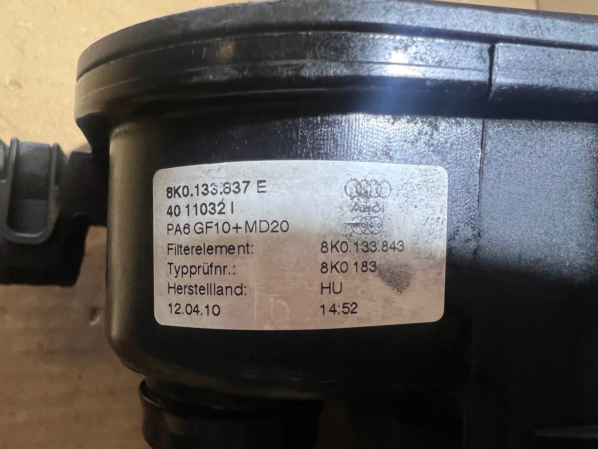 Каталожний номер деталі: AUDI Q5 8R 3.2 FSI OBUDOWA FILTRA POWIETRZA 8K0133837E 16.11