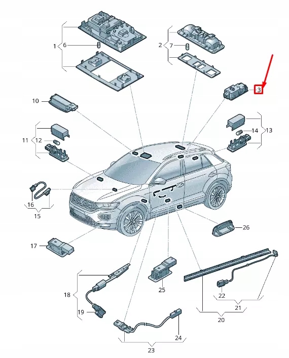 Vw t-roc a11 правий middle interior reading light 2ga947292adnr