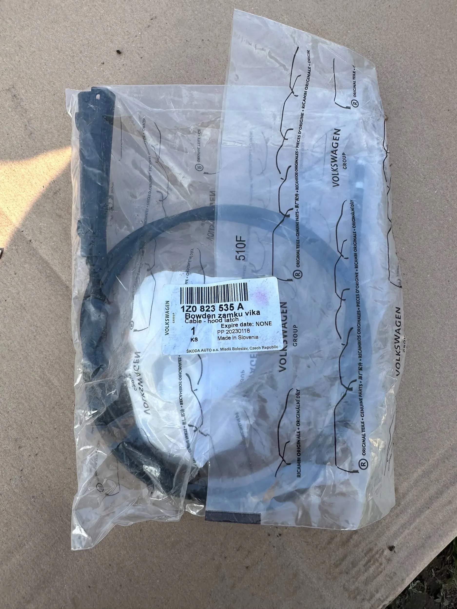 Трос замка кришки капот оригінальний номер skoda octavia 1z0823535a