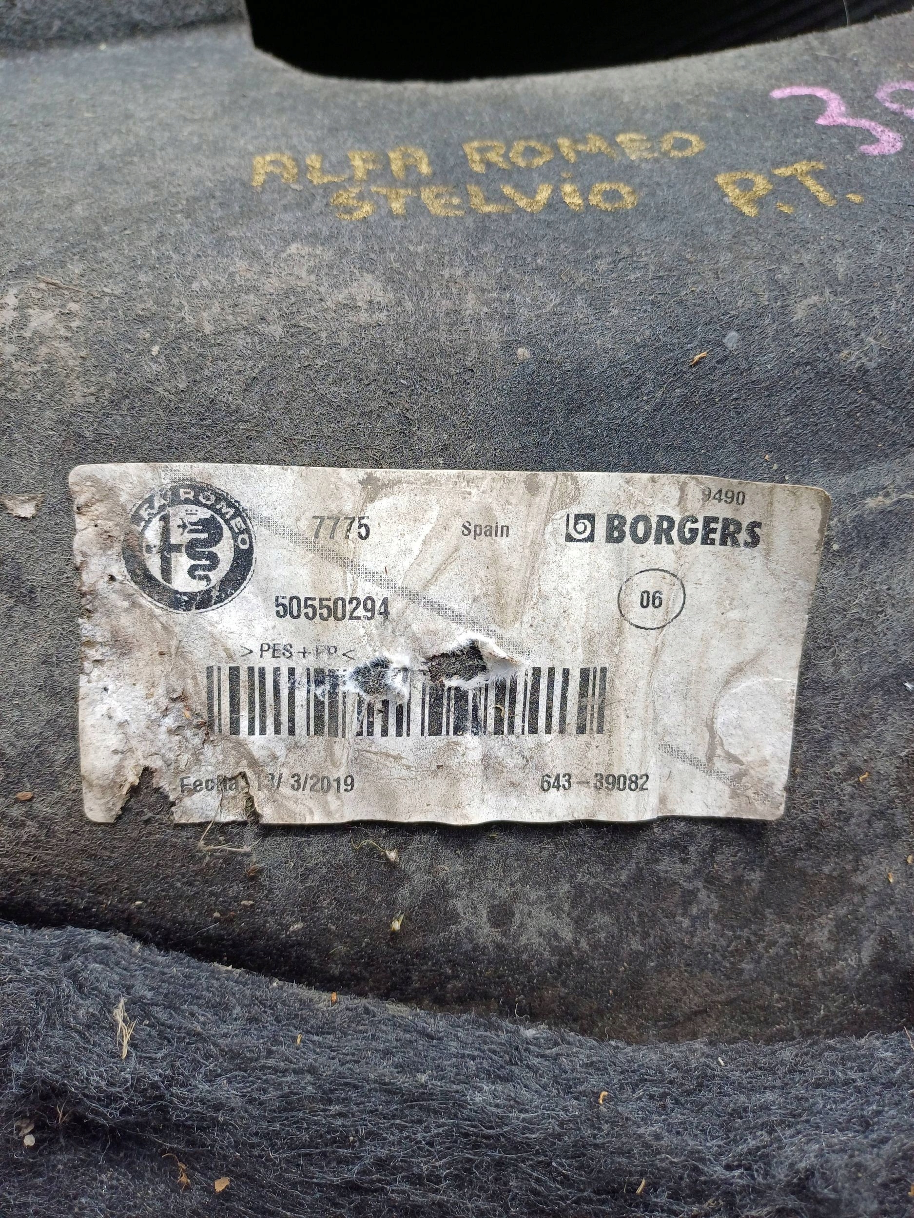 Alfa romeo stelvio підкрилок правий задня задні 50550294 оригінальний номер