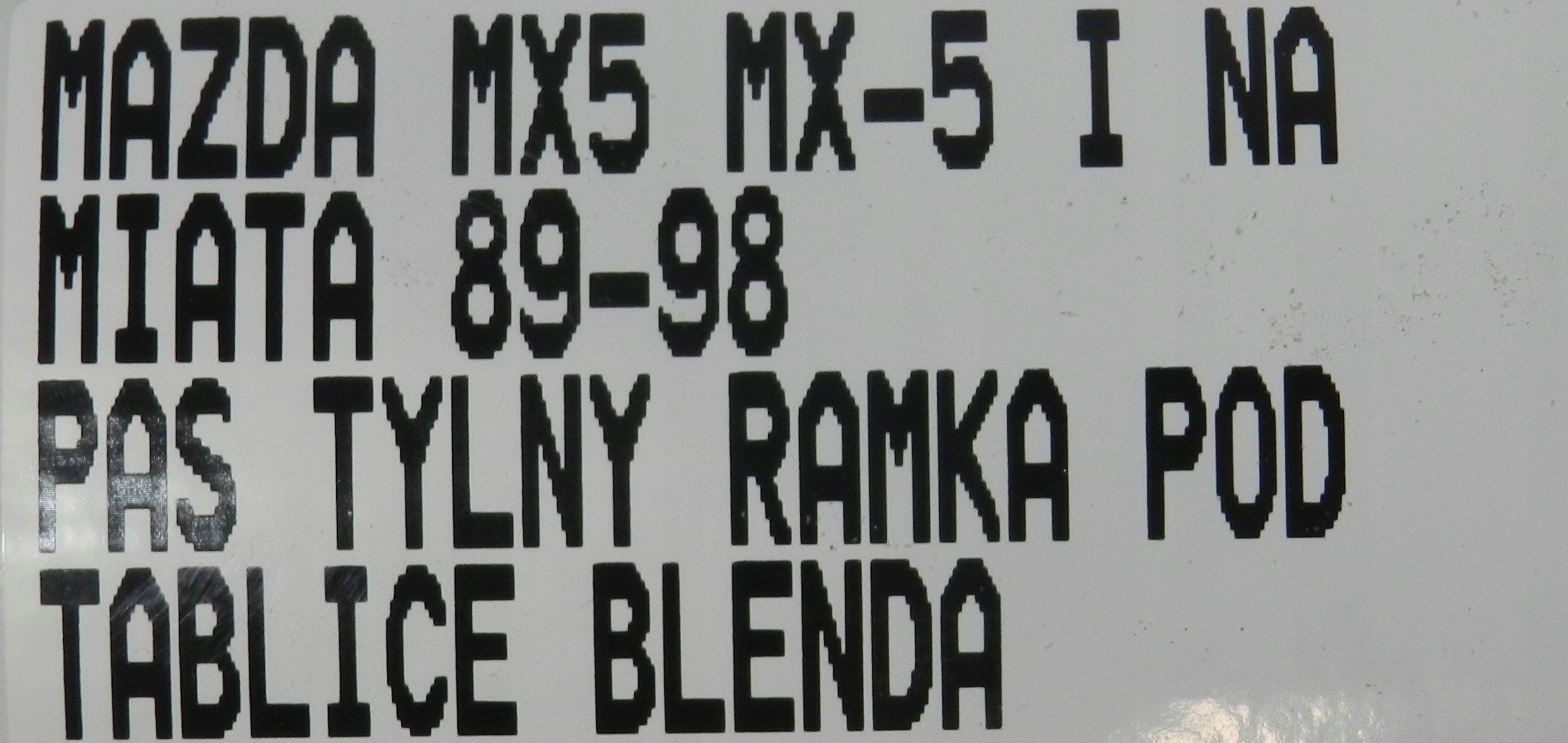 | Каталожний номер деталі: | PAS TYLNY RAMKA POD TABLICĘ BLENDA MAZDA MX5 MX-5 I NA MIATA 89-98 |