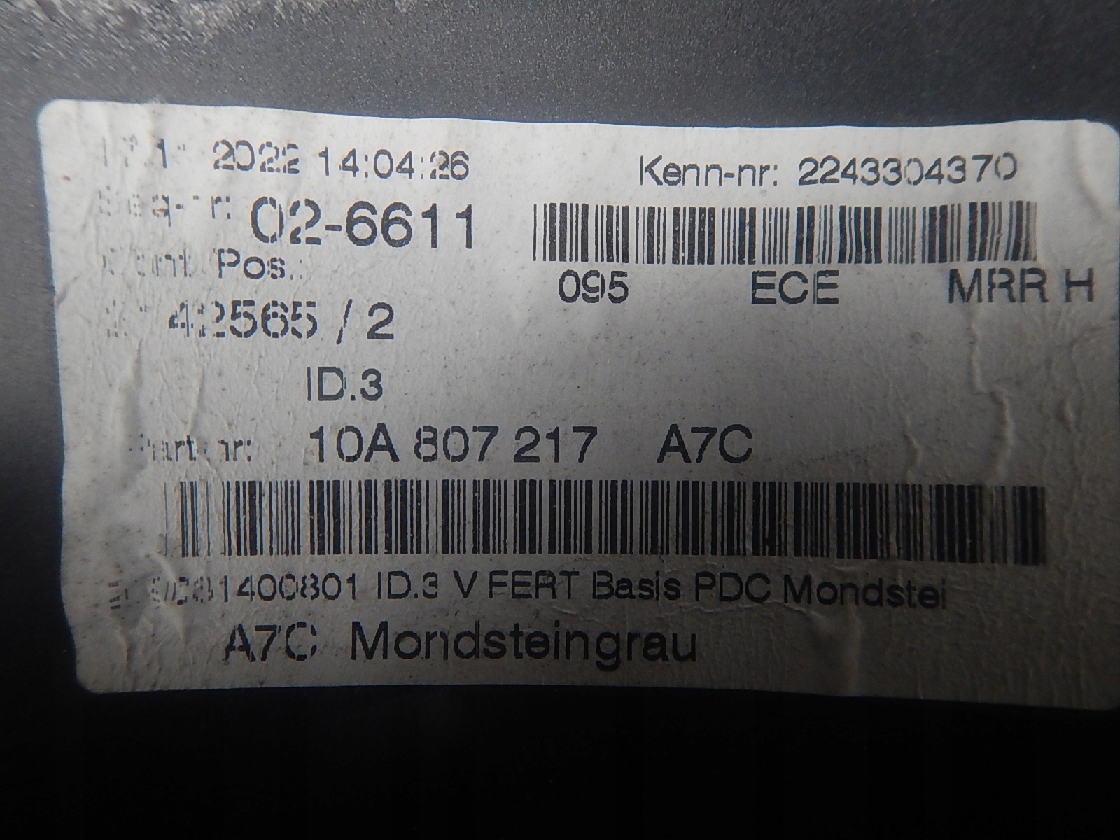 | Оригінальний каталожний номер: | 10A807221 |