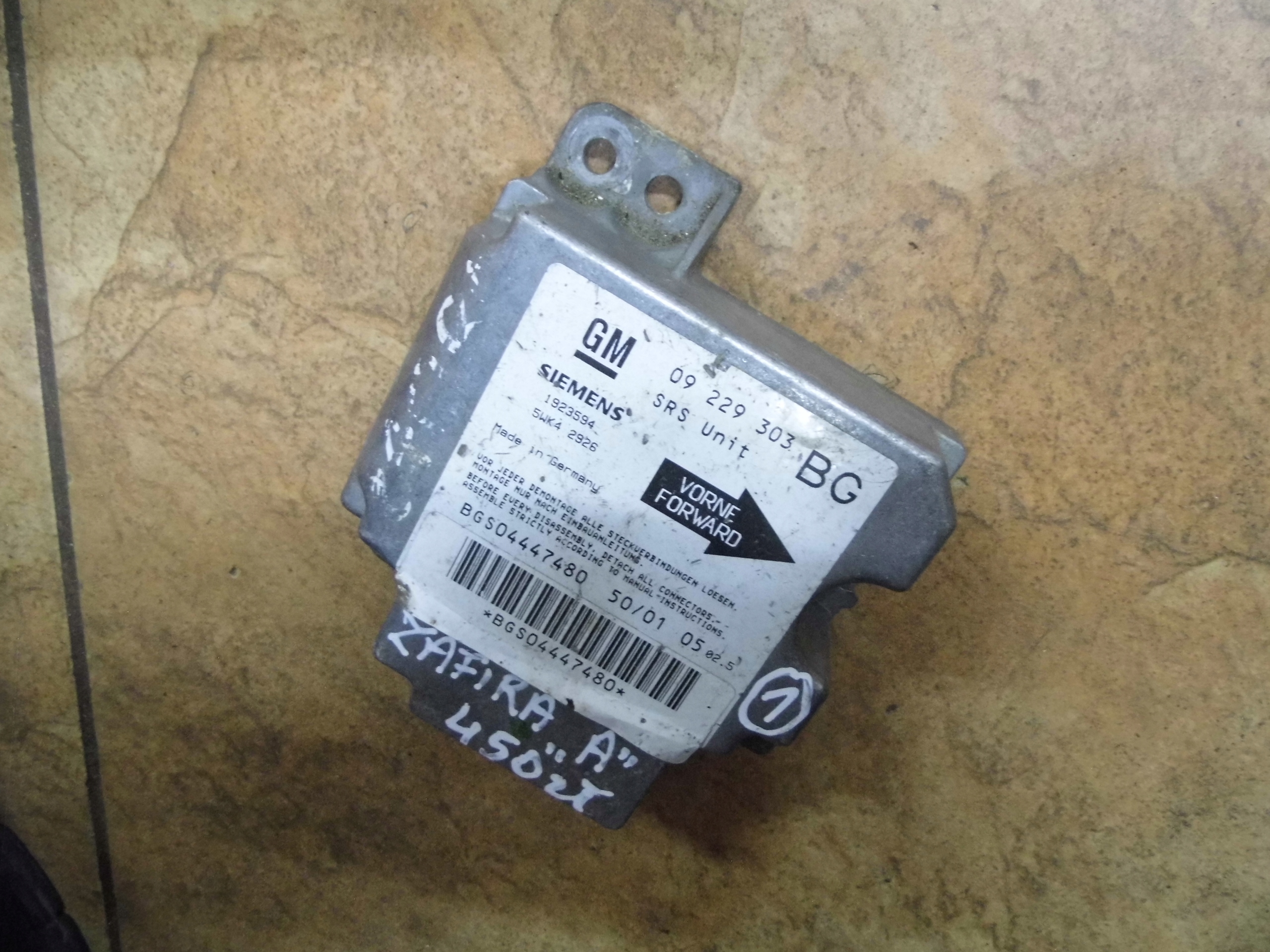| Каталожний номер деталі: | ZAFIRA A MODUŁ SENSOR AIRBAG 09229303 |