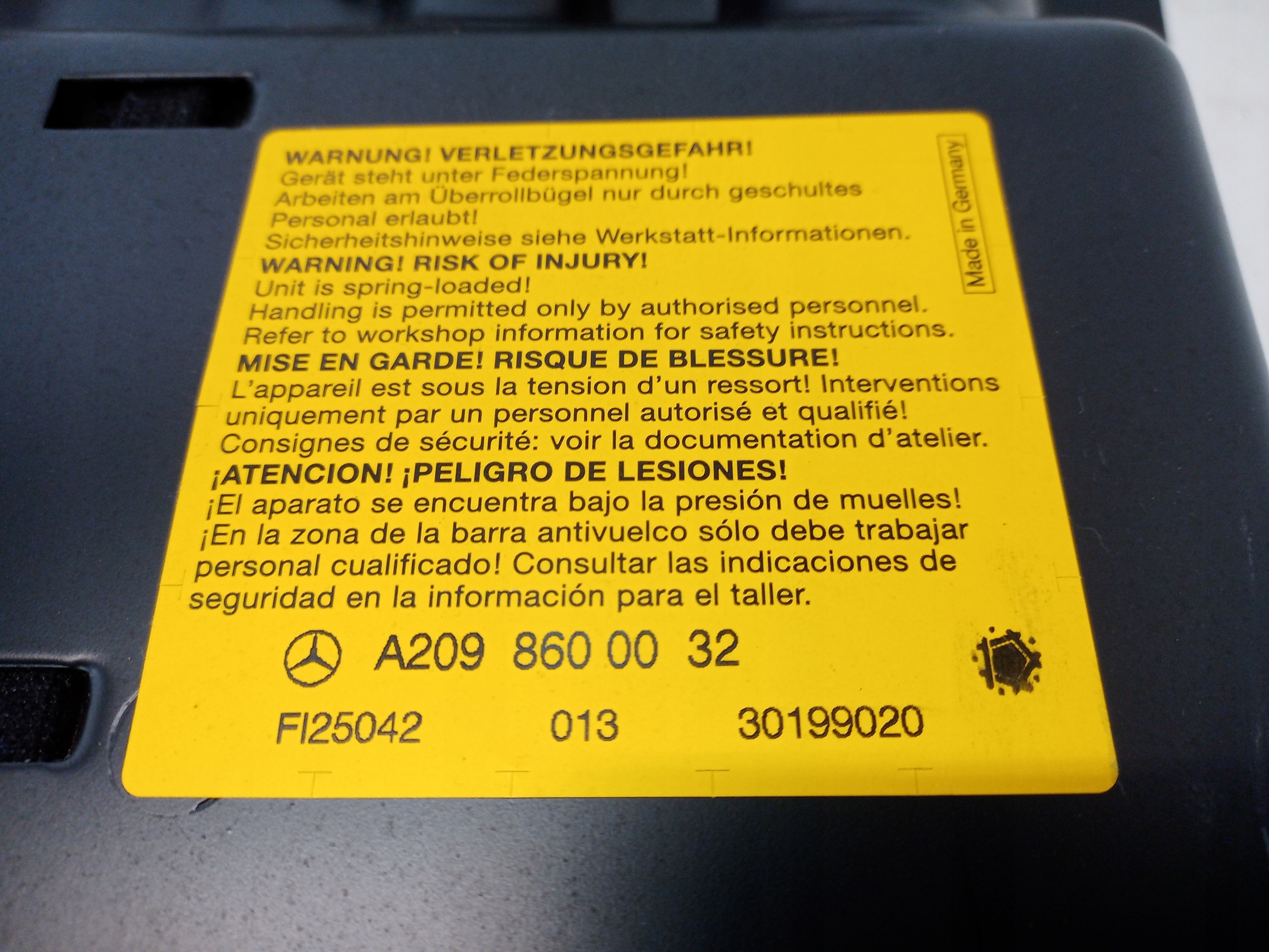 Підголівник захисна дуга задня mercedes clk w209 cabrio a2098600032