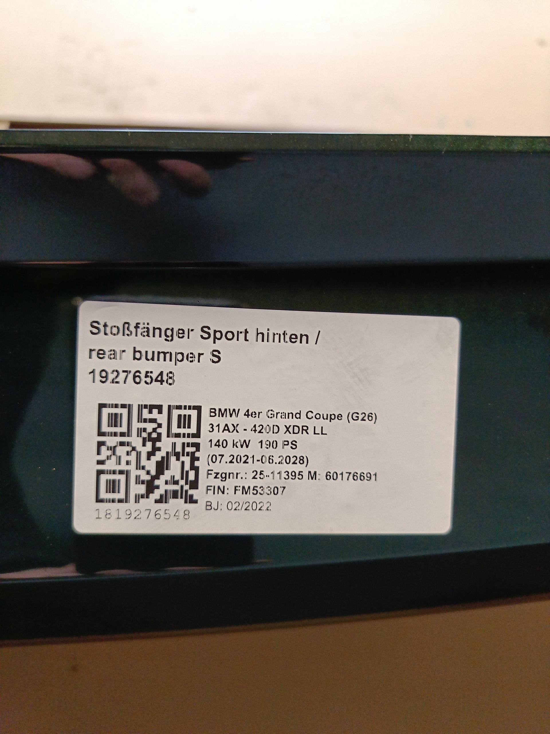 Каталожний номер деталі: ZDERZAK, TYŁ, BMW, 4, G26, M, PAKIET, C4E, SANREMO, GREEN, 6XPDC