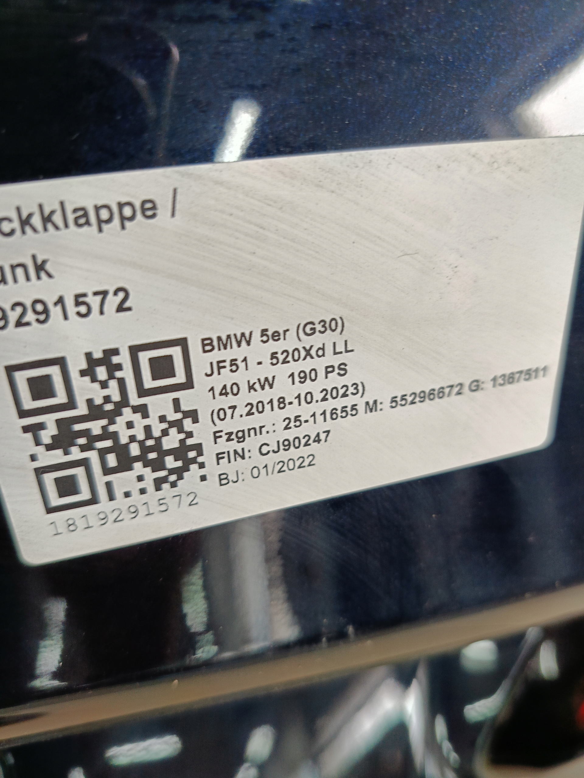 Кришка багажника багажника bmw 5 g30 416 carbonschwarz w колір
